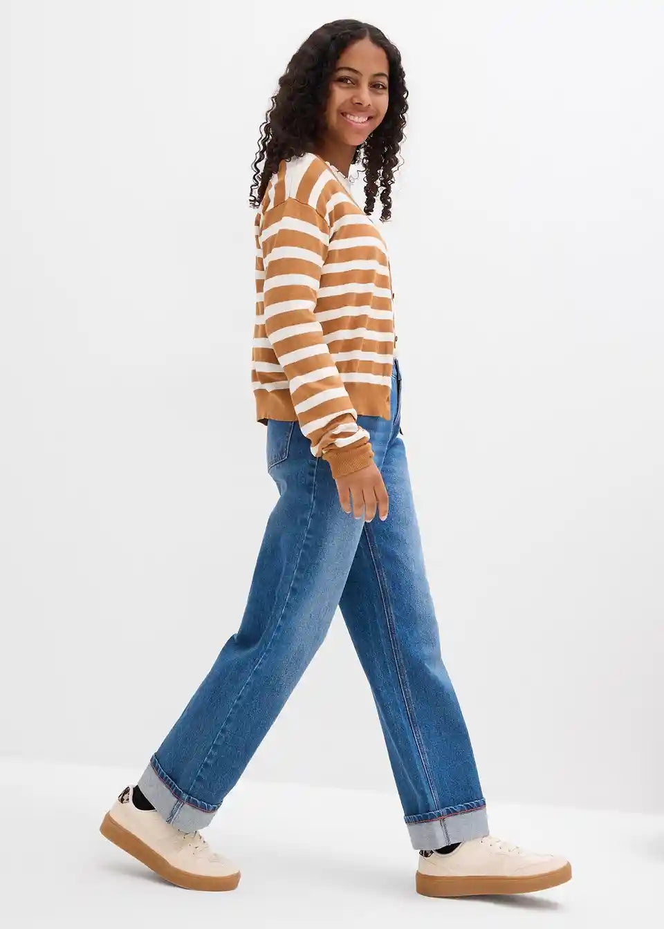 Moderne kavbojke s širokimi hlačnicami za dekleta z zavihanim robom hlačnic