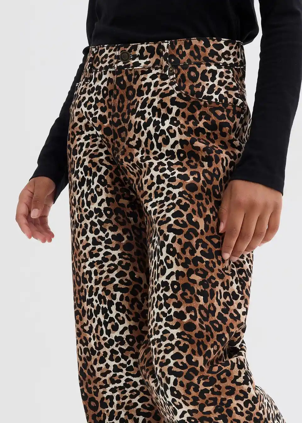 Stilne kavbojke s širokimi hlačnicami za dekleta z leopardjim živalskim vzorcem