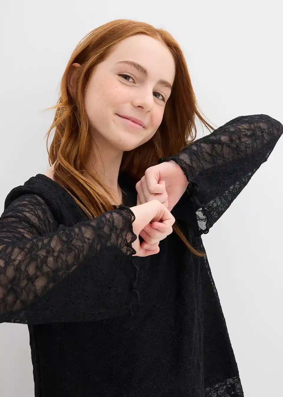 Elegantna majica z dolgimi rokavi iz čipke za dekleta
