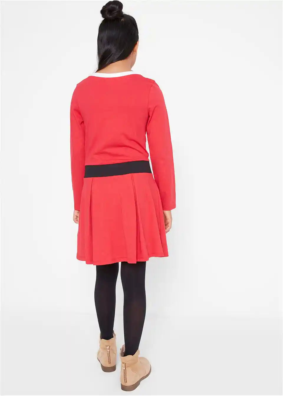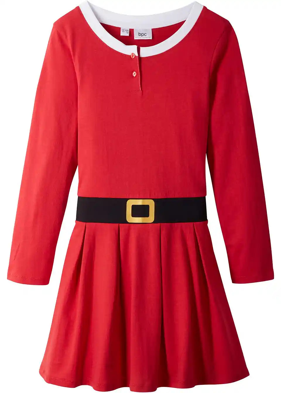 Čudovita jersey obleka z dolgimi rokavi za deklice: Ta božična obleka s sprednjim zapenjanjem je prava paša za oči v zimskih mesecih.