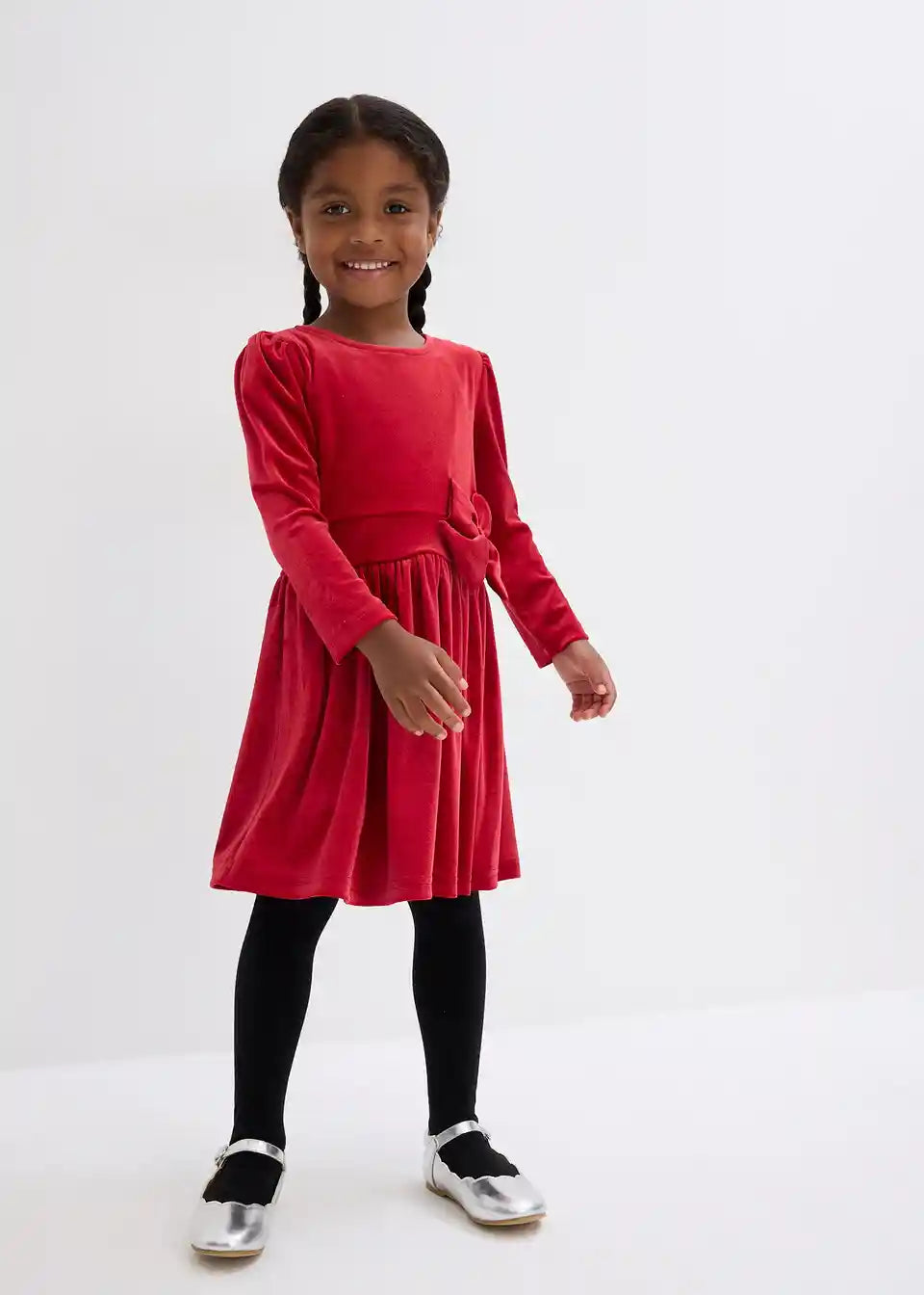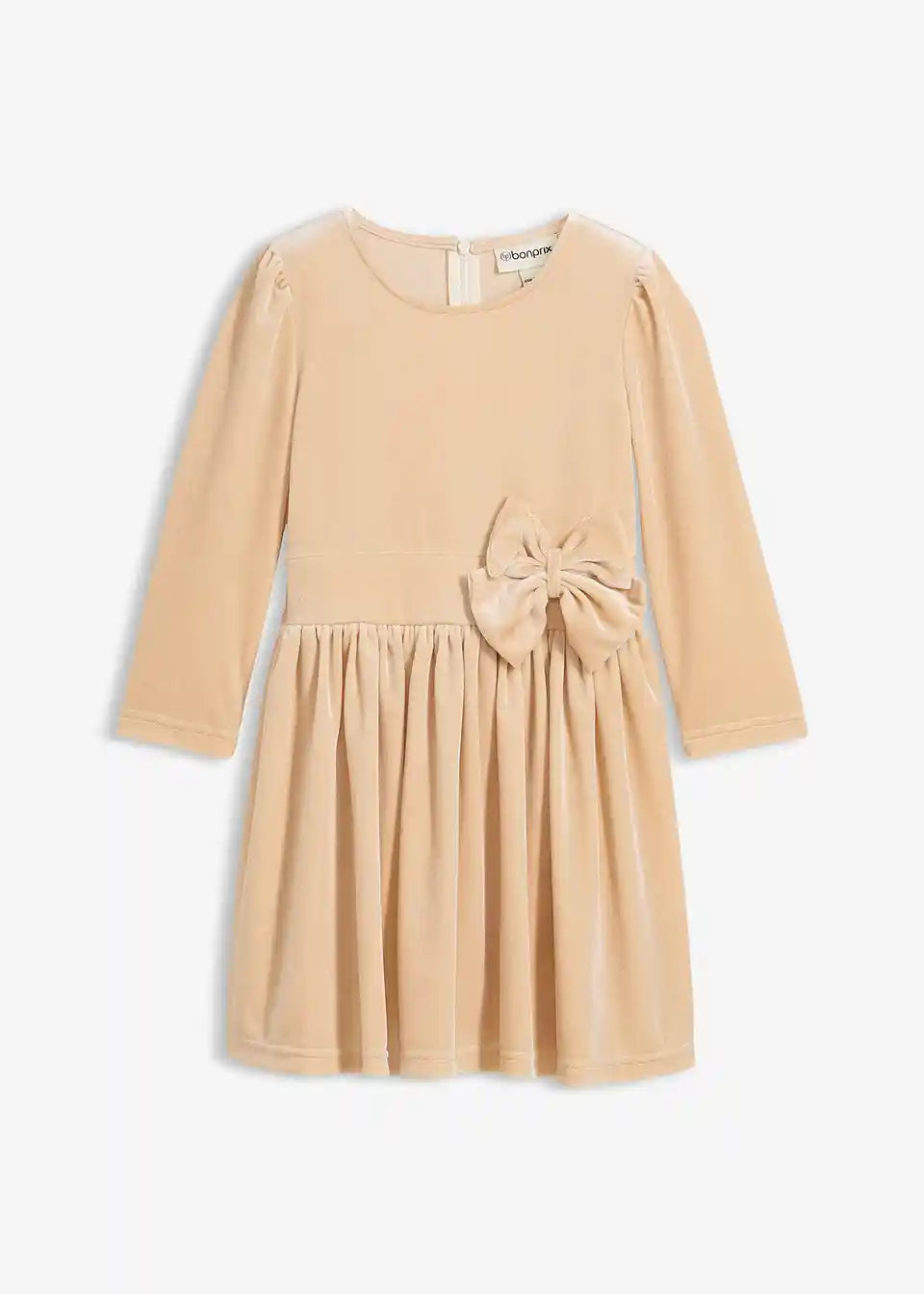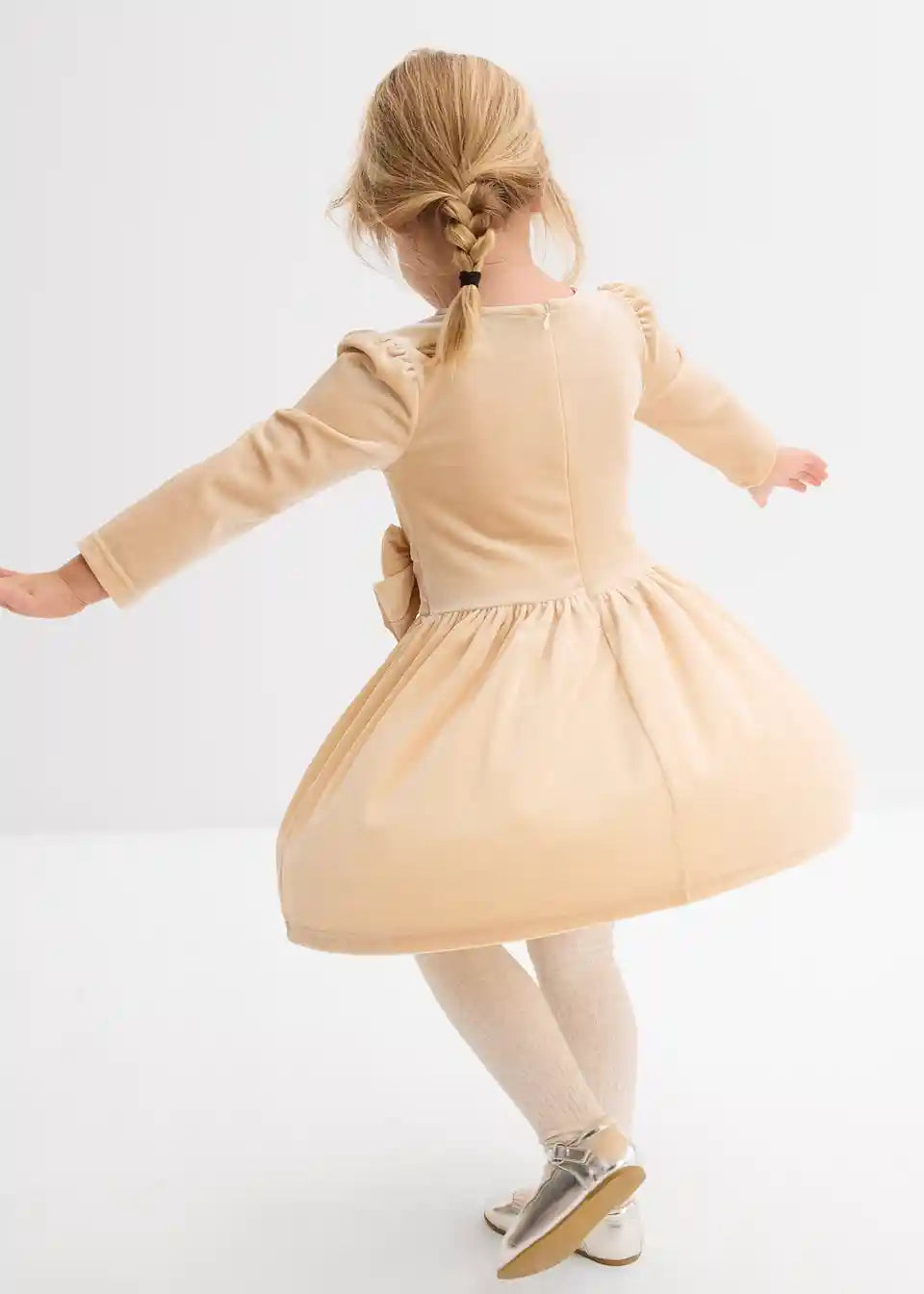 Srčkna dekliška obleka iz žameta z izjemno pentljo