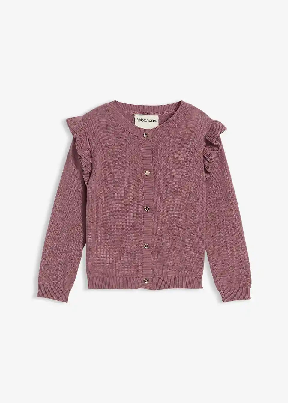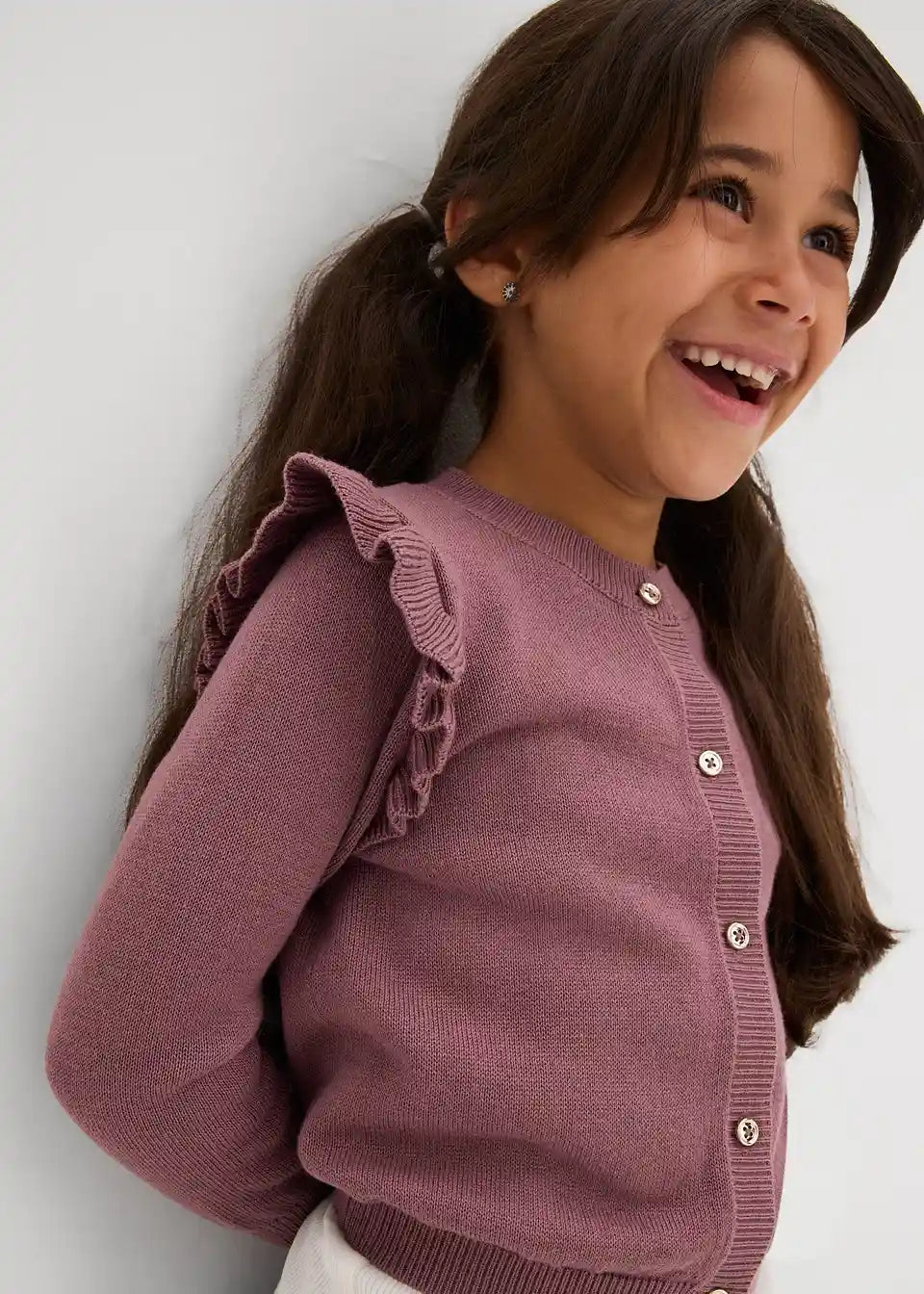 Igriva fino pletena jopa za dekleta z okrasnimi volani