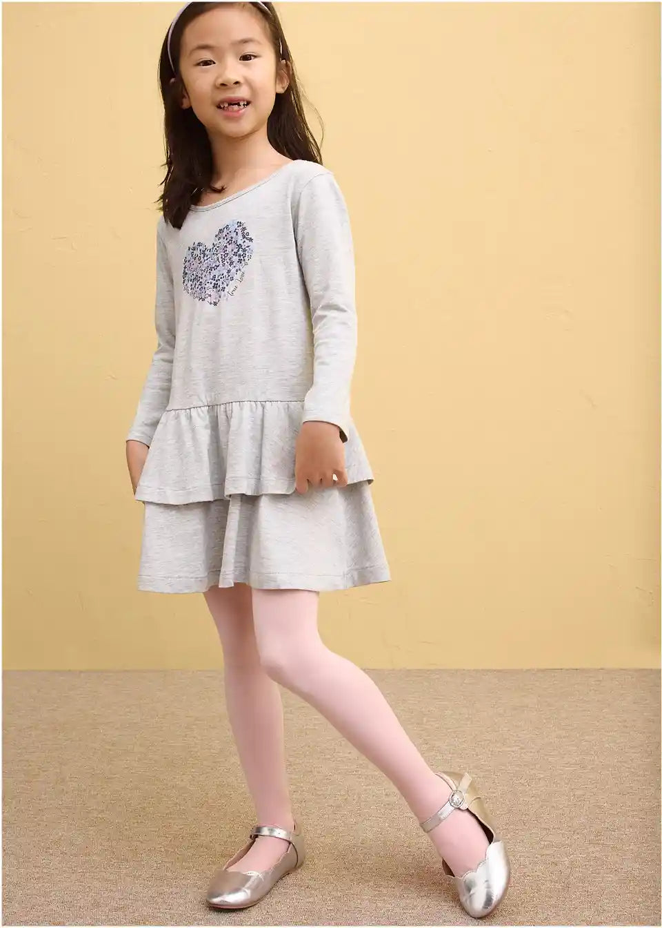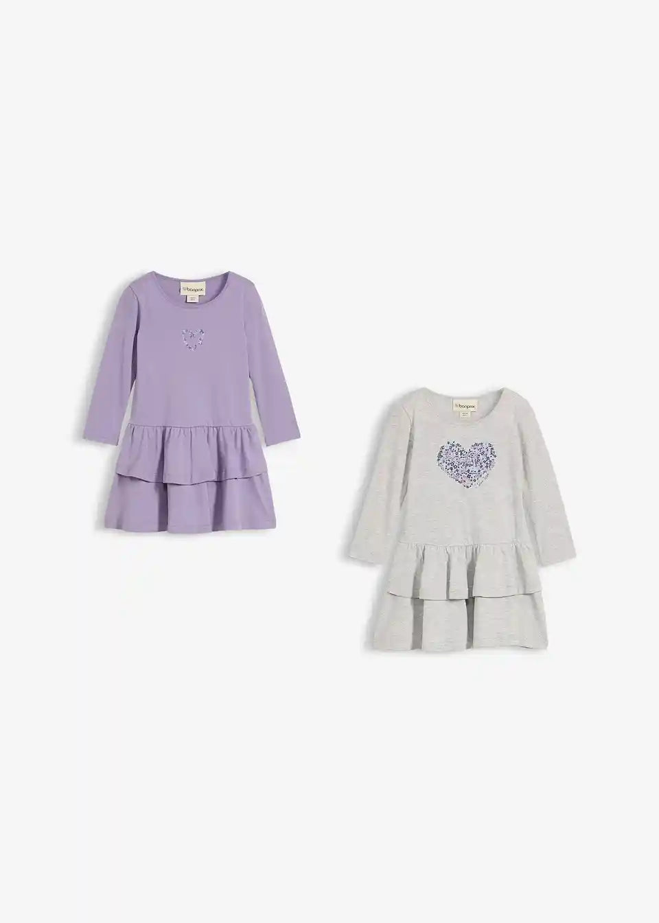 Igriva obleka z dolgimi rokavi iz jerseyja z velikim potiskom (2 kosa) z udobnim krilnim delom z volani