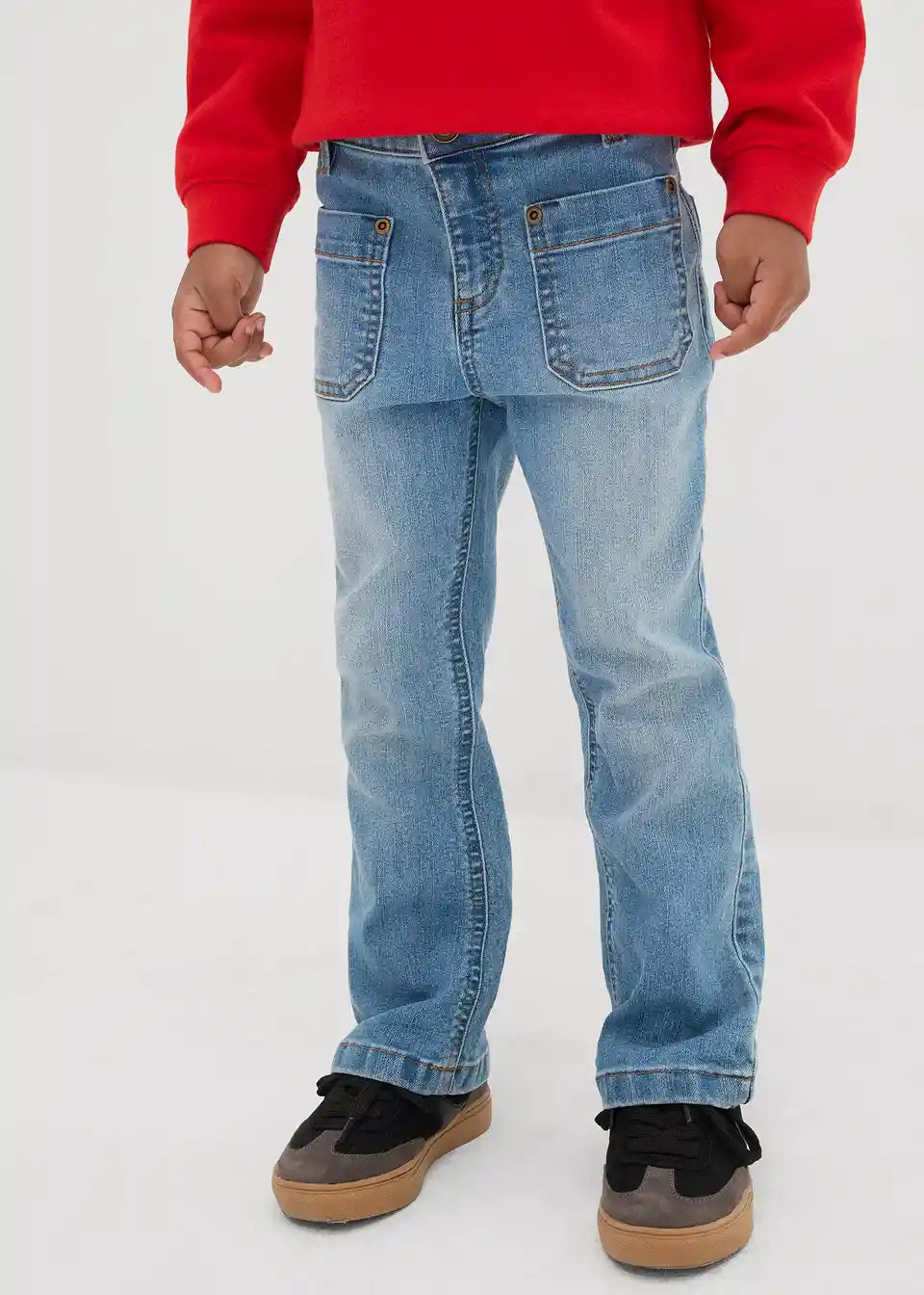 Modne kavbojke v boot-cut kroju za dekleta s srednje visokim pasom