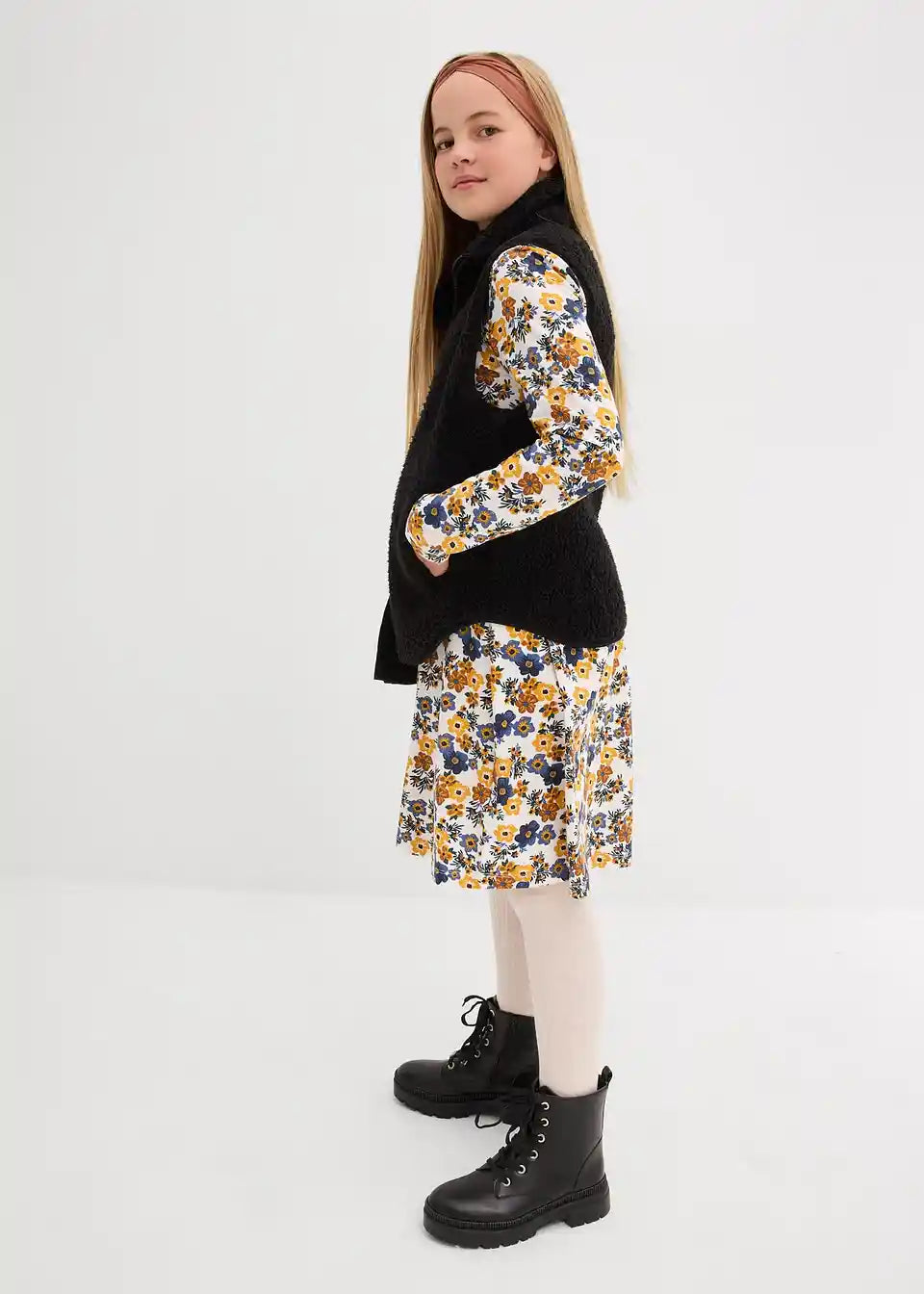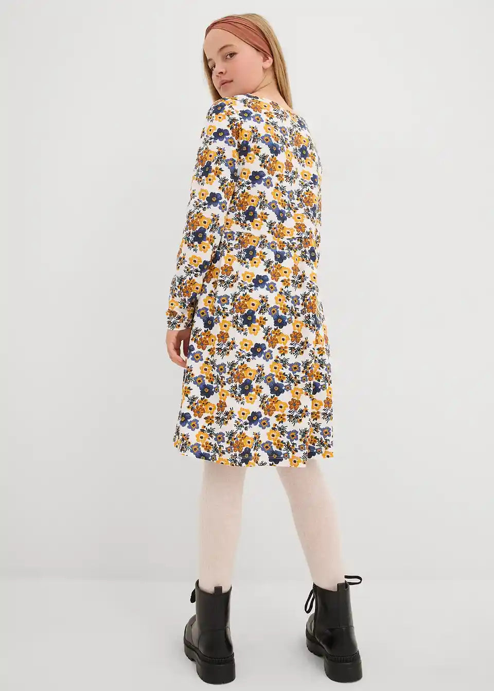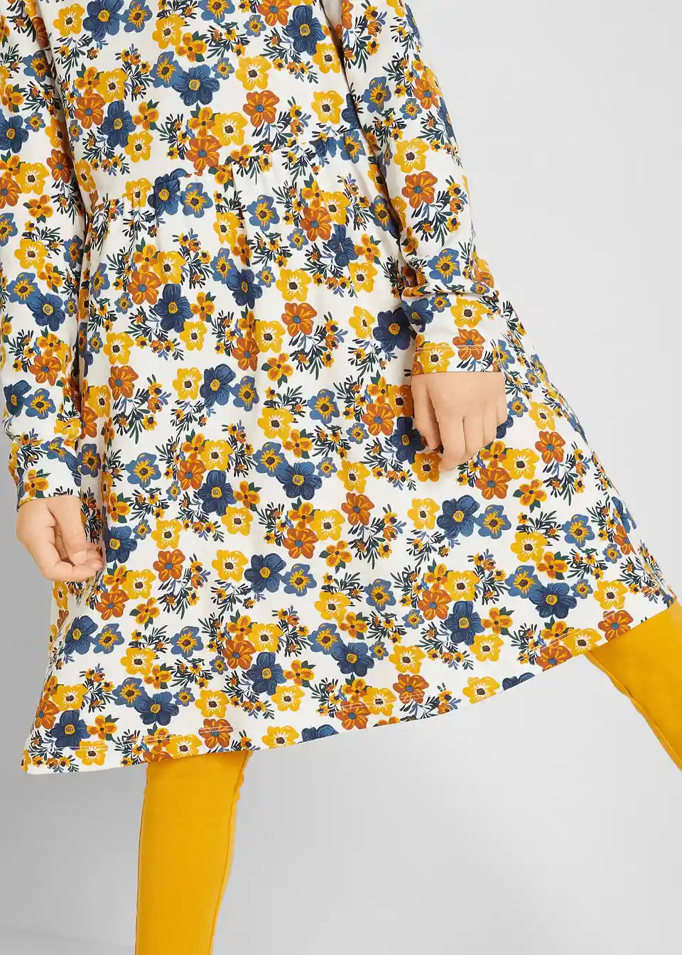 Praktična obleka v dvojnem pakiranju za dekleta. Rahlo razširjeno krilo za optimalno udobje. Moderen cvetlični potisk za več raznolikosti v vsakdanjem življenju.
