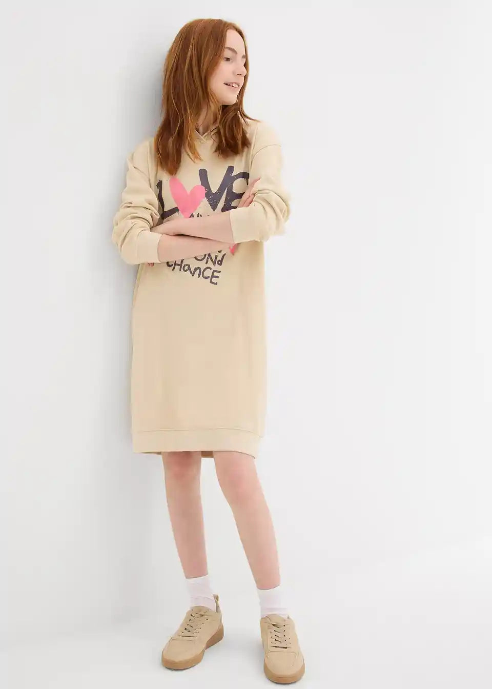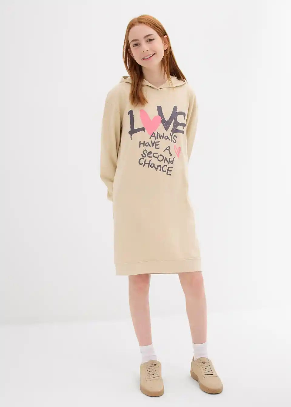 Ljubka obleka iz trikoja s kapuco za dekleta z ljubkim potiskom