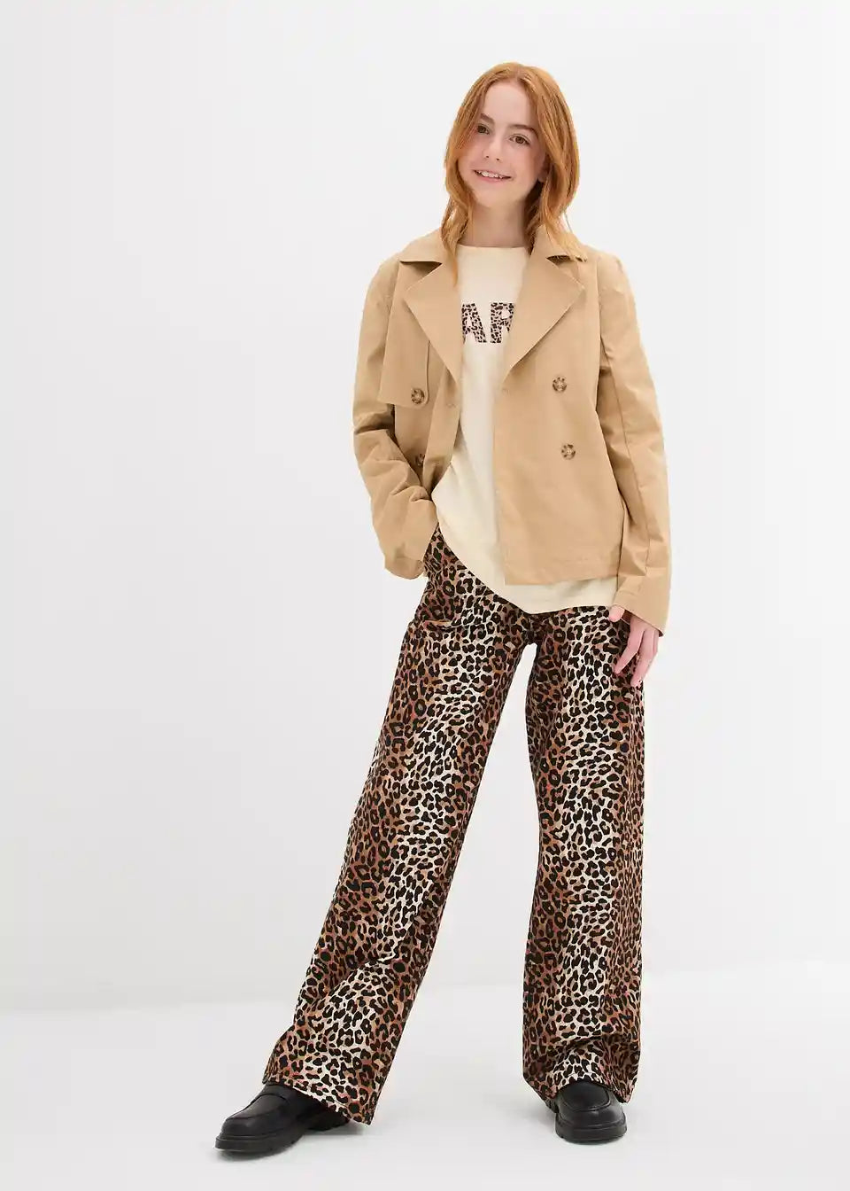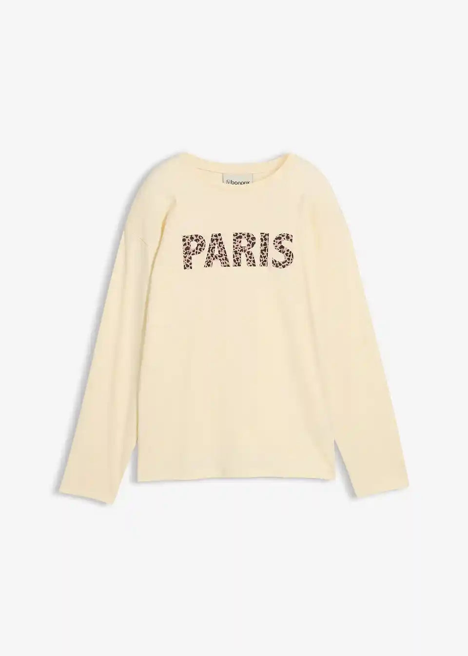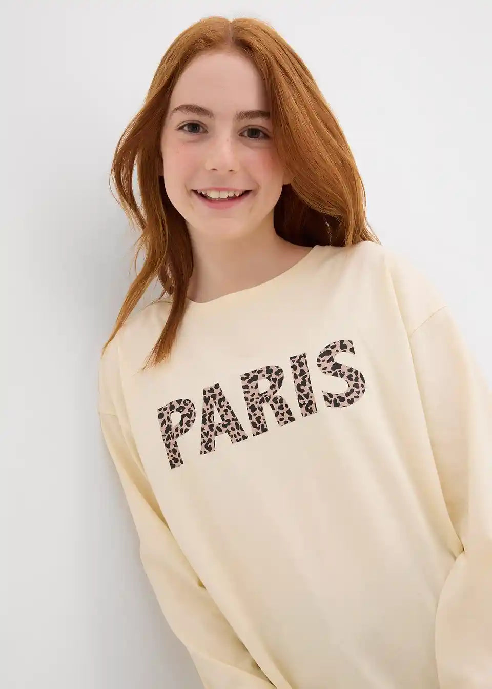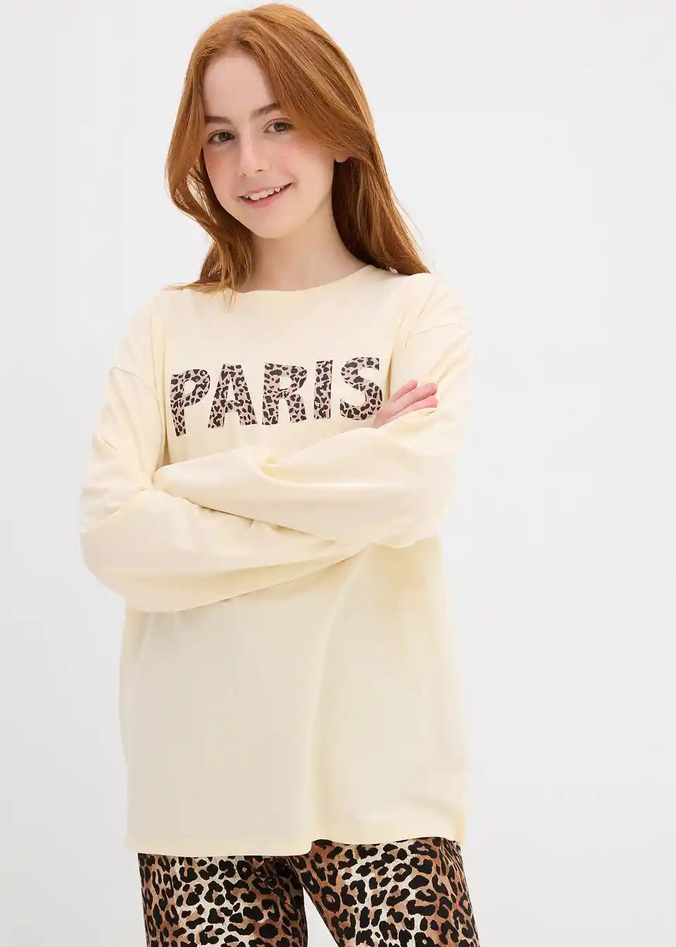 Majica z dolgimi rokavi in modnim leopardjim potiskom iz čistega ekološkega bombaža