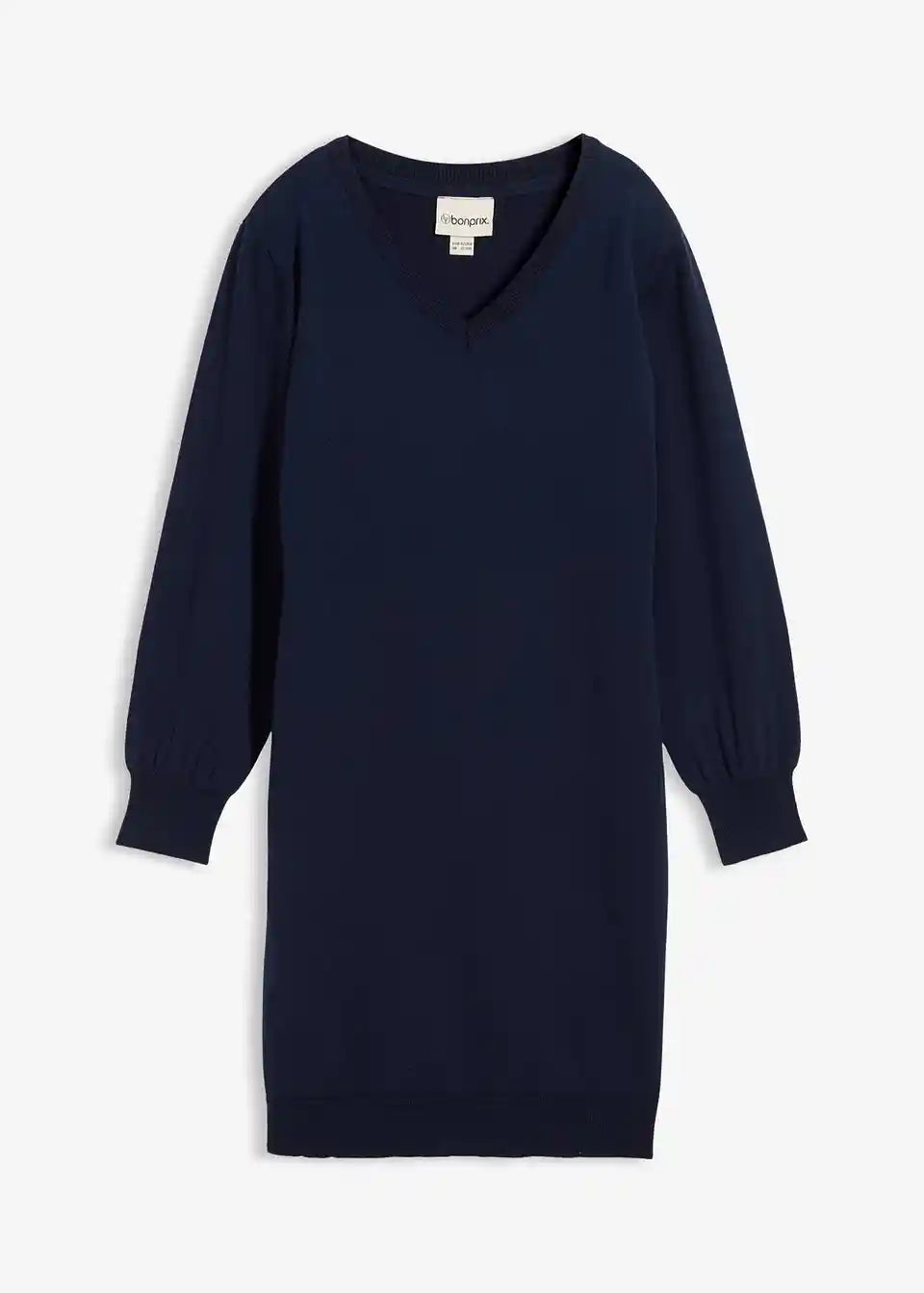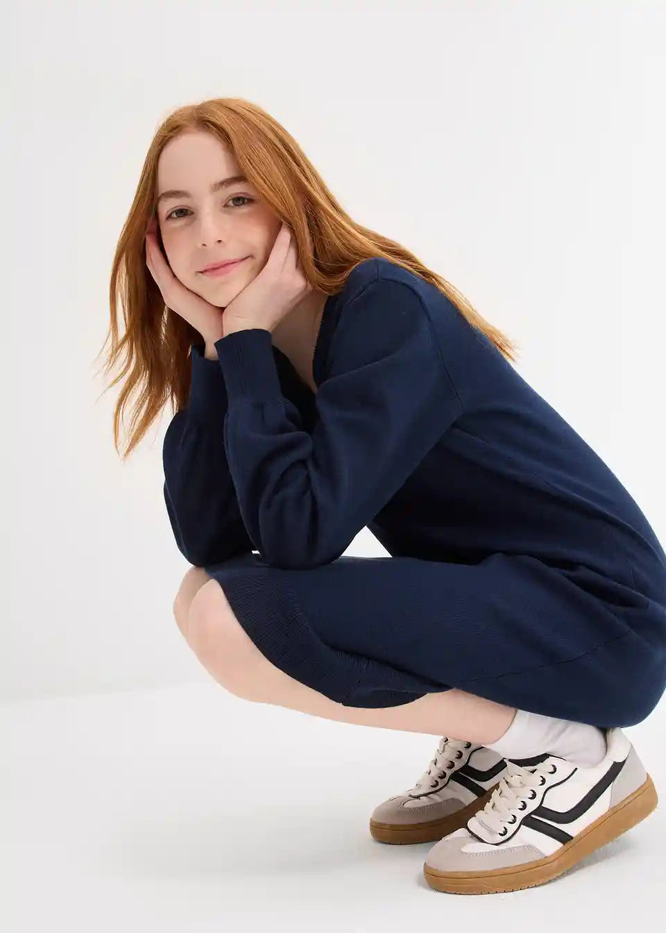 Jesenska pletena obleka za dekleta z modnimi balonastimi rokavi