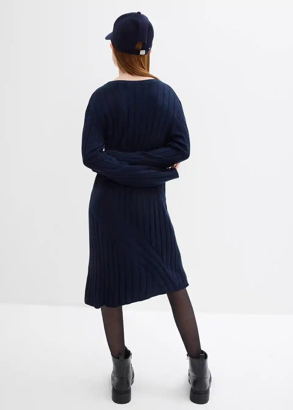 Ta čudovita pletena obleka združuje slog in udobje! Z visokim okroglim izrezom in dolgimi prišitimi rokavi nudi udobno prileganje. A-krojen model zagotavlja laskavo silhueto, medtem ko se konča nad kolenom. Povsod prisoten rebrast pleten vzorec daje obleki posebno teksturo in moderen videz. Idealna za praznične priložnosti ali sproščene izlete – samo oblecite in uživajte v udobju!