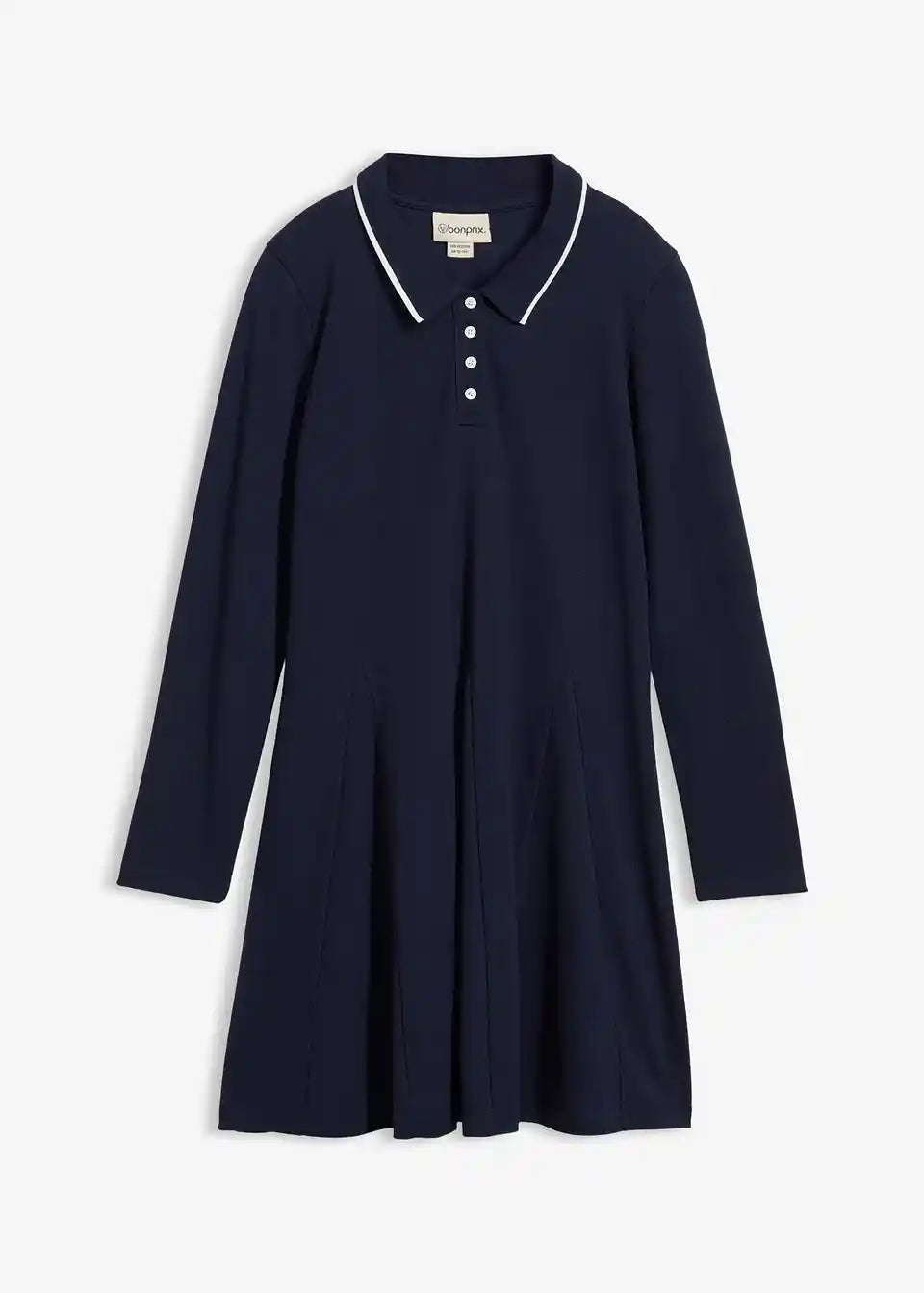 Obleka z dolgimi rokavi iz trikoja za dekleta z ovratnikom iz čistega ekološkega bombaža