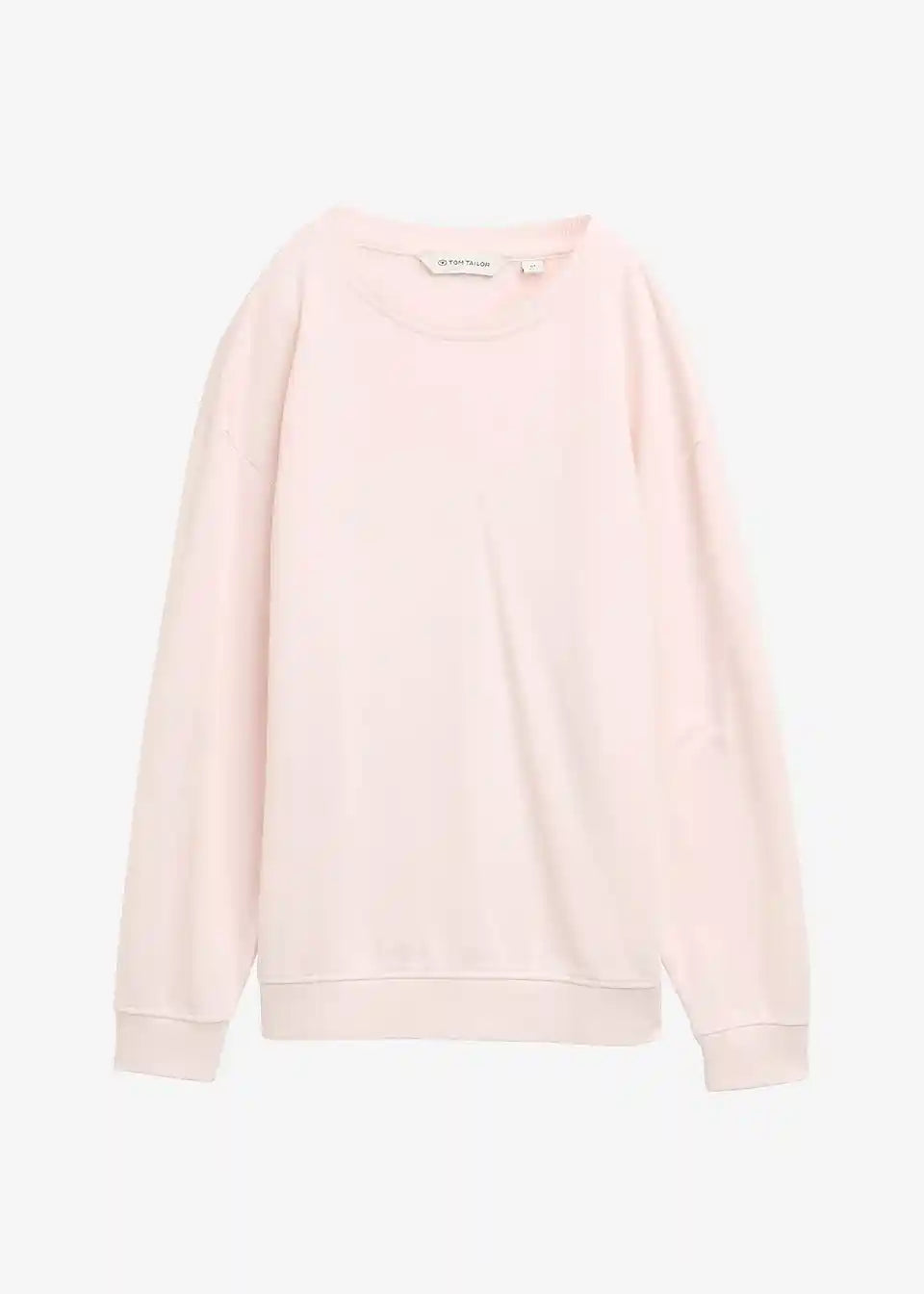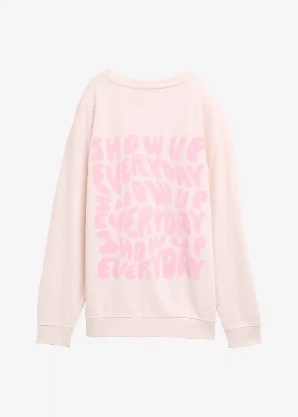 Udobna Tom Tailor ohlapna majica iz trikoja rozaste barve s potiskom sporočila zadaj za dekleta