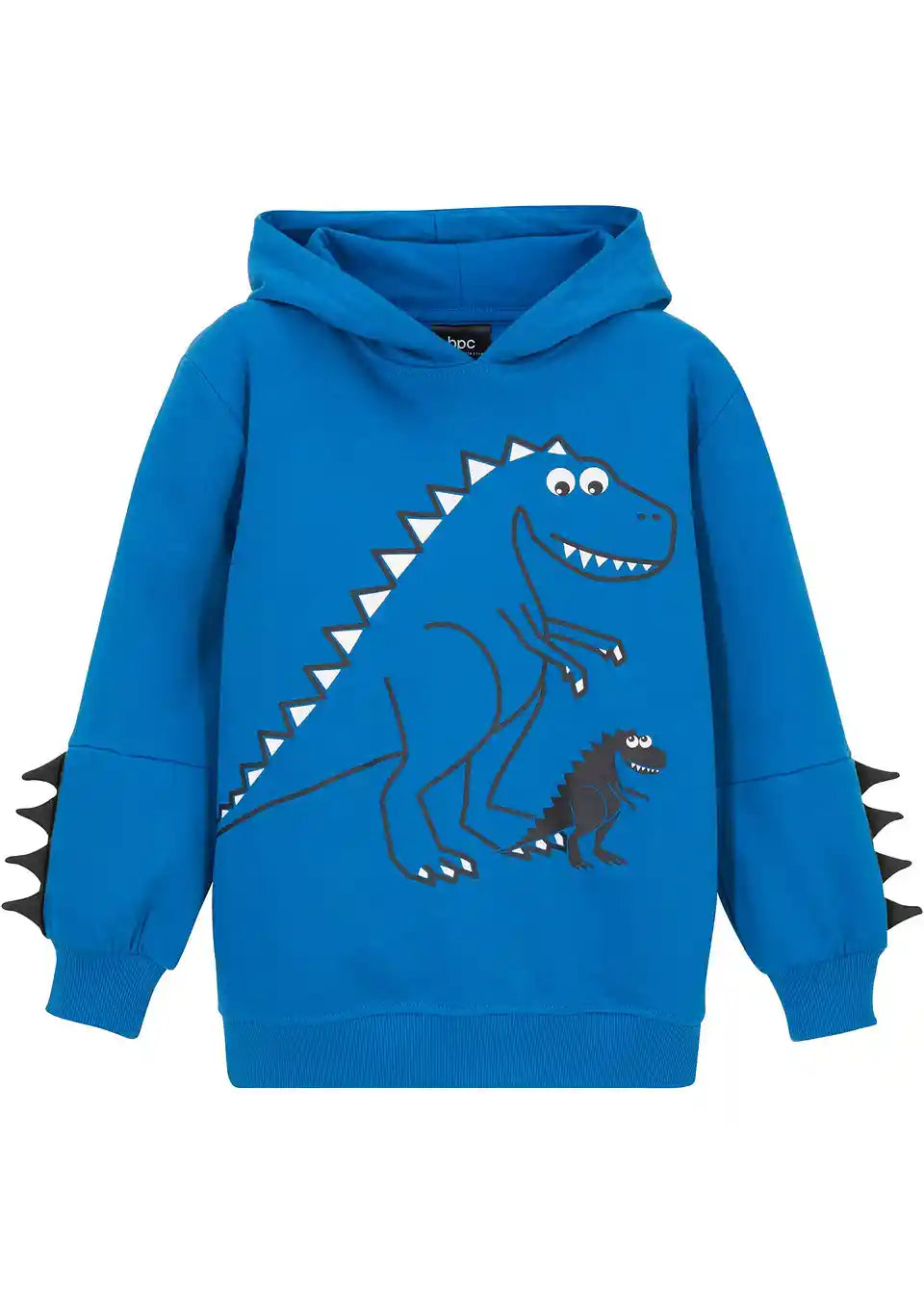 Ta super kul pulover s kapuco je absolutno obvezen kos za oboževalce dinozavrov: Hoodie je oblikovan z odličnim potiskom dinozavra in aplikacijo na rokavih, kar ta kos naredi pravi privlačen kos! Prijetna kakovost bombaža ter široki patentni robovi iz rebrastega pletiva zagotavljajo optimalno udobje pri nošenju!