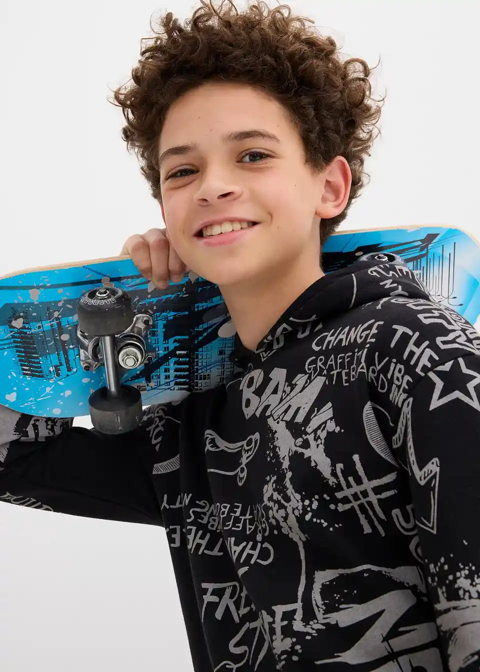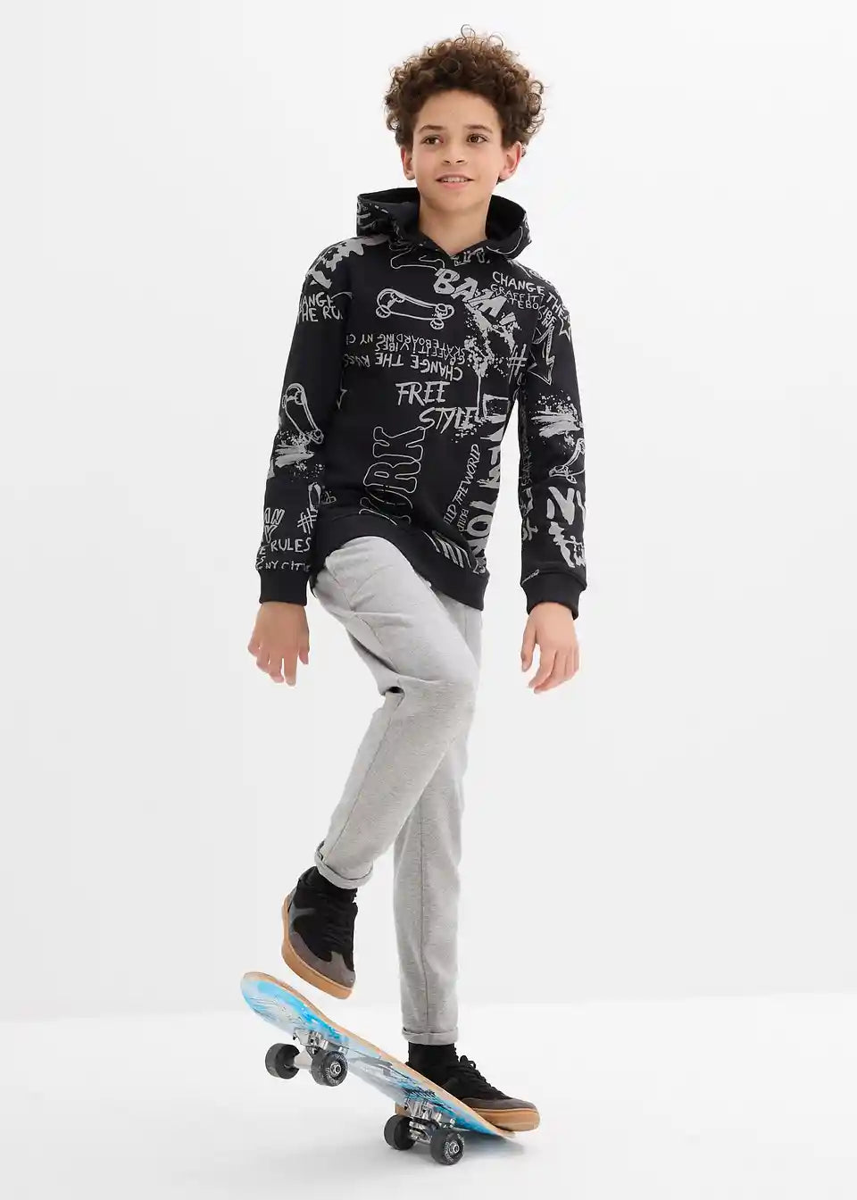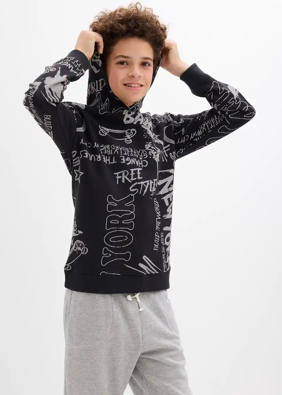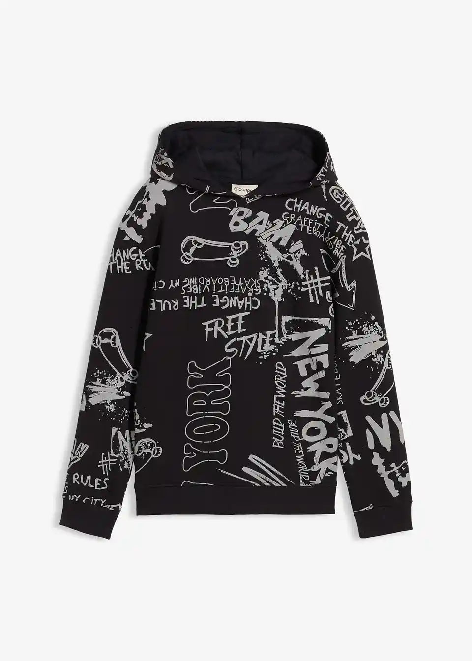Fantovska majica iz trikoja s kapuco s kul skaterskim potiskom