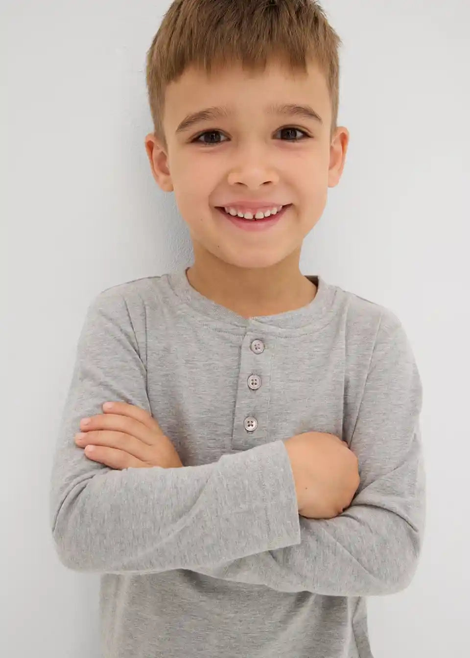 Preprosta hanley majica z okroglim ovratnim izrezom z gumbki za fante z letvijo z gumbi