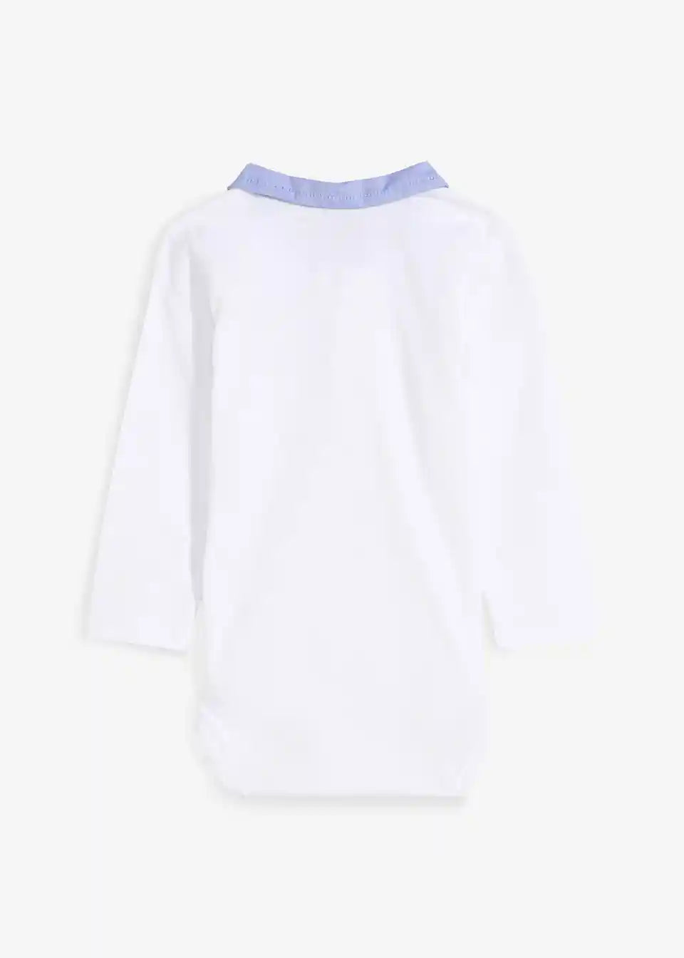 Otroški body iz organskega bombaža v beli barvi z modrim ovratnikom