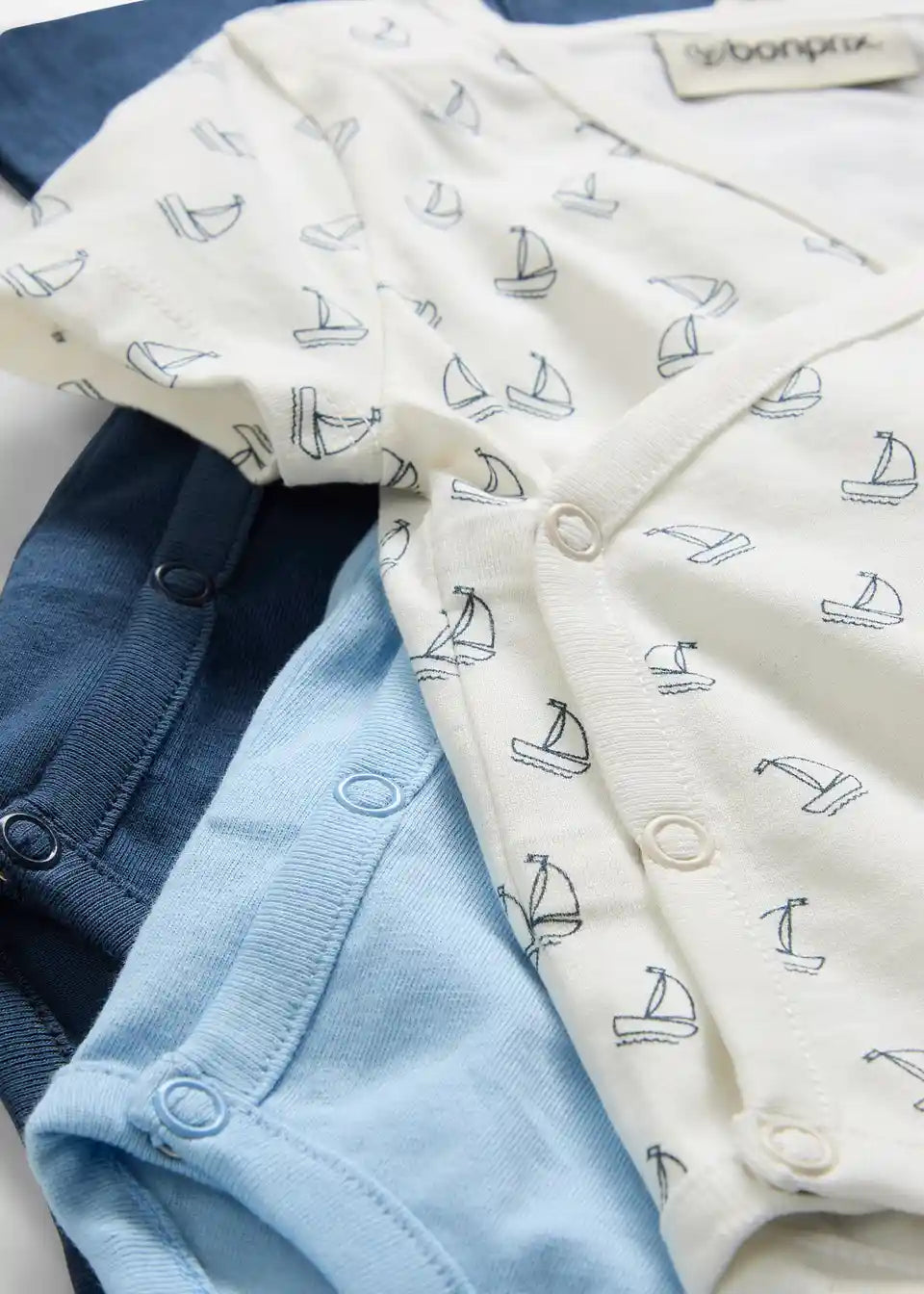 Mehki preklopni bodiji iz bombažnega jerseya s praktičnimi pritiskači ob strani in v razkoraku za enostavno oblačenje in slačenje. Prijeten material zagotavlja najvišje udobje pri nošenju in je popoln za vsakdan. Morski motivi čolnov so potiskani z vodno osnovo – idealni za male raziskovalce.
