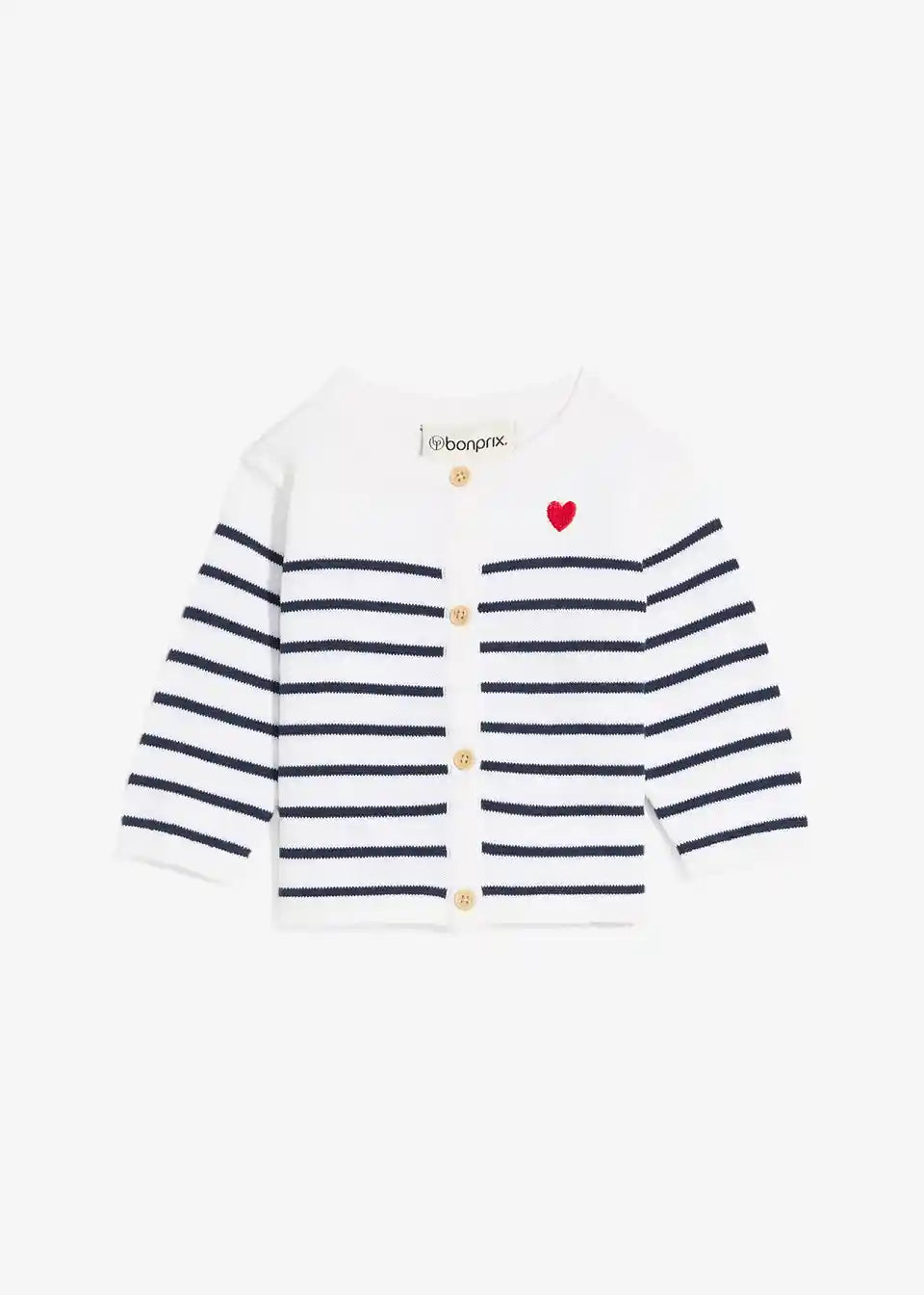 Tanek pleteni jopič iz bombažne mešanice z vezenim srčkom za dojenčke