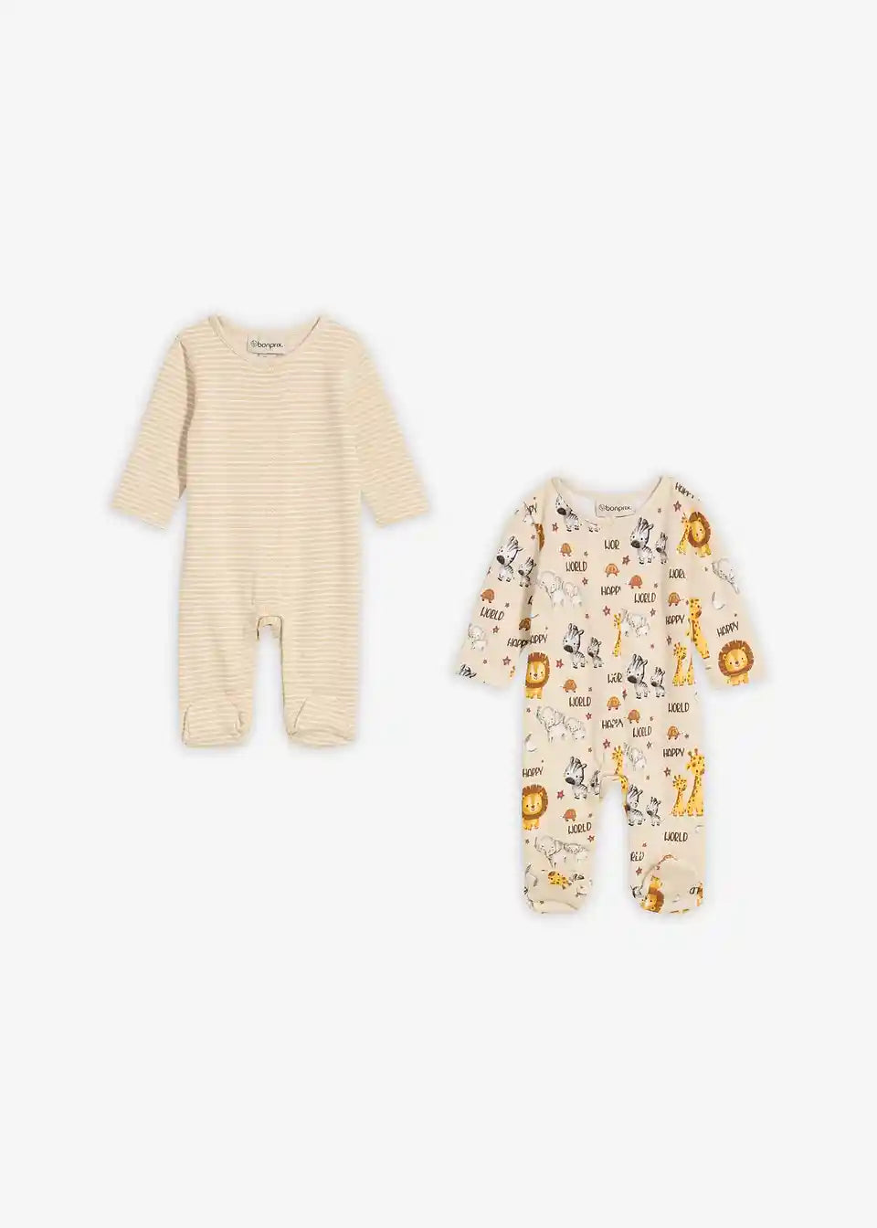 Otroški pajacek za spanje v pakiranju po 2, narejen iz čiste organske bombažne tkanine, je popolna izbira za prijetne, tople noči! Izdelan je iz 100-odstotnega bombaža brez škodljivih snovi, zato nudi izjemno udobje in je nežen do občutljive dojenčkove kože. S priročnimi pritiskači ga je mogoče z lahkoto obleči in sleči. Udoben kroj poskrbi, da se malčki počutijo prijetno ves čas, ljubki potiski pa dodajo prikupen videz. Odličen za mirne noči in sproščene dni – s tem kompletom bodo mali sanjači vedno popolno opremljeni!