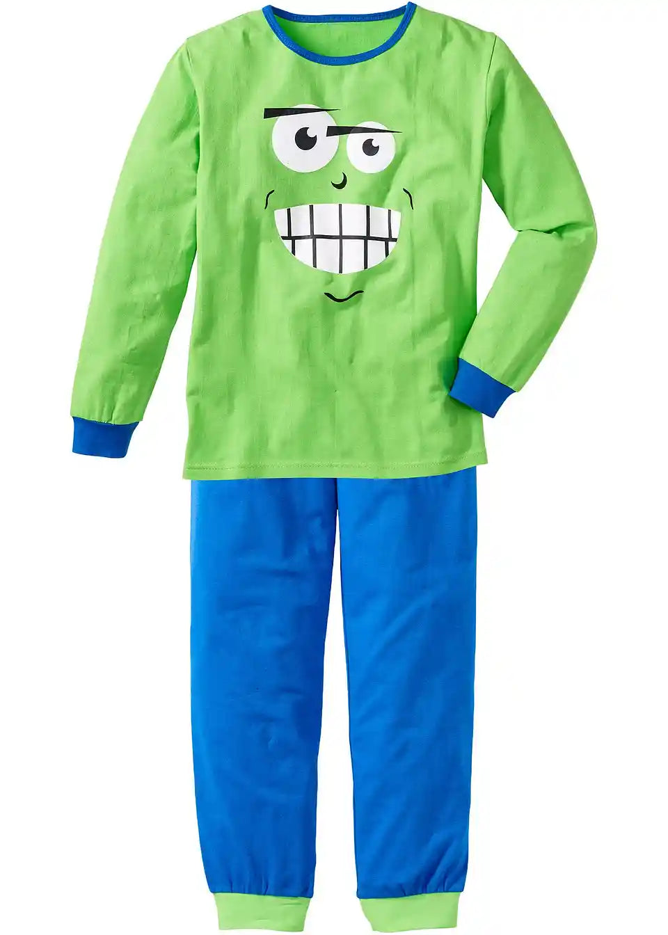 Zabaven obraz takoj pričara dečkom dobro voljo pri tej pižami. Model iz bpc kolekcije sestavljata majica z dolgimi rokavi in dolge hlače. Oba kosa sta zasnovana v sproščenem kroju za veliko svobode gibanja med spanjem. Spodnji del dobi z elastičnim pasom dodatni element za vrhunsko udobje. Kontrastni detajli, kot so robovi na koncu rokavov in hlačnic ter paspulacija na okroglem izrezu, prinašajo pižami dodatno svežino.