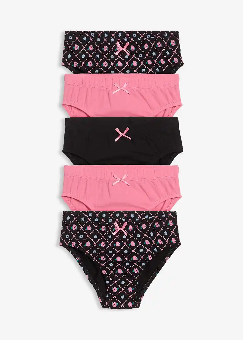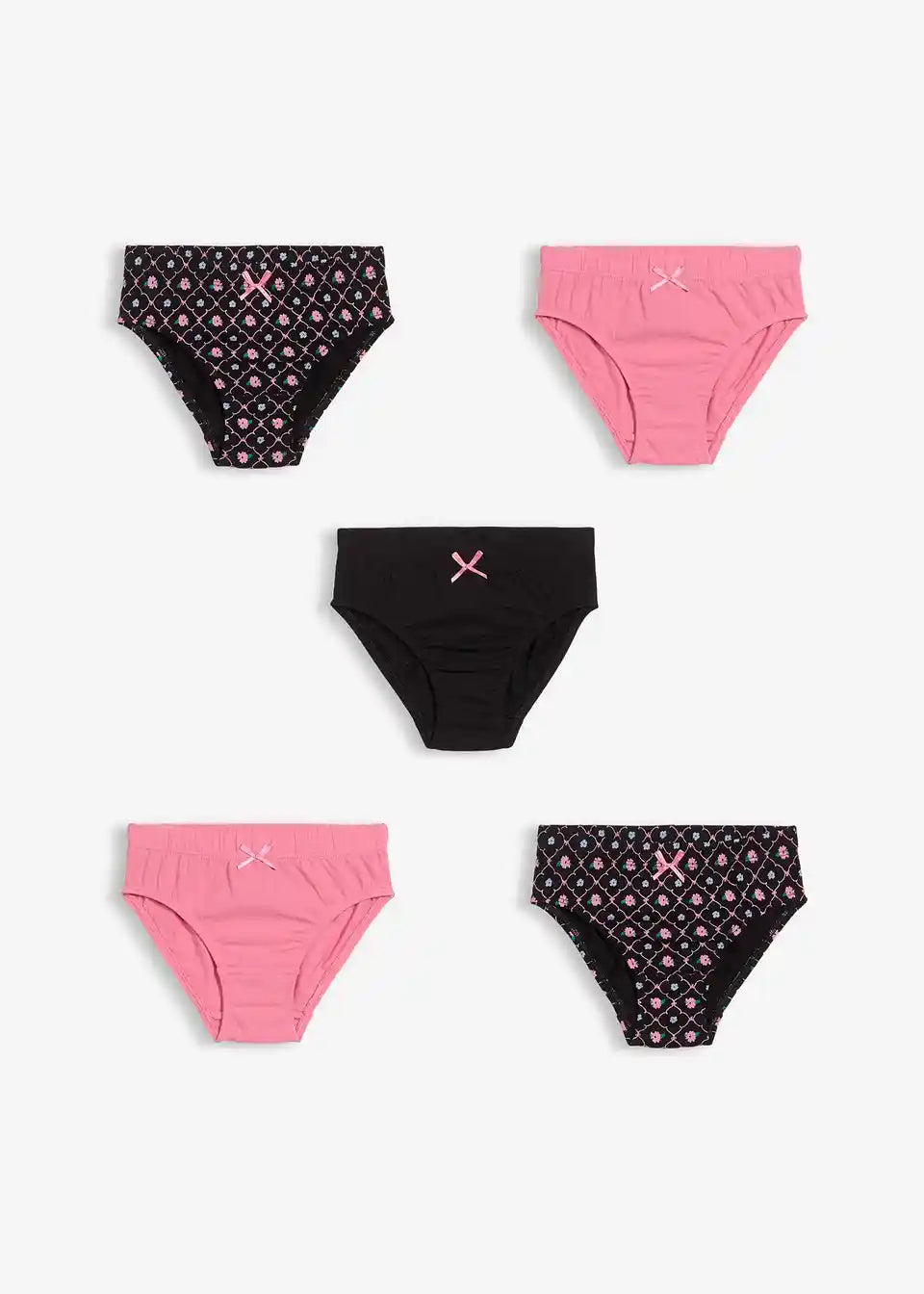 Lepe spodnjice iz ekološkega bombaža v praktičnem 5-delnem setu z majhno pentljo spredaj.