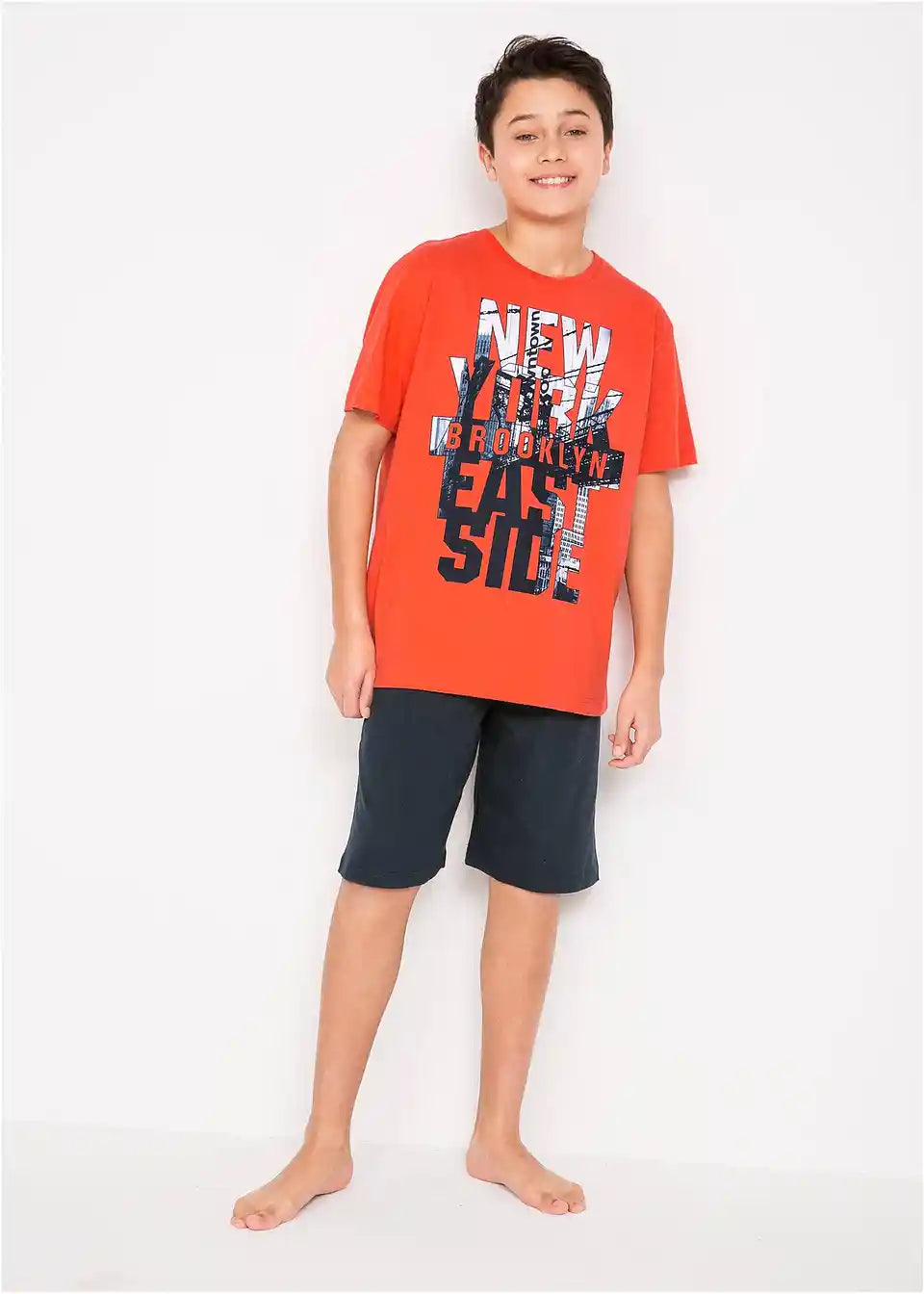 Sproščeno in udobno se predstavlja ta kul fantovska kratka pižama znamke bpc. Hlače in majica prepričata z zelo prijetnim občutkom ob nošenju: kratke hlače iz mehke majicaste tkanine nudijo veliko svobode gibanja zahvaljujoč udobnemu pasu, prav tako kot ohlapno krojena majica s kratkimi rokavi.