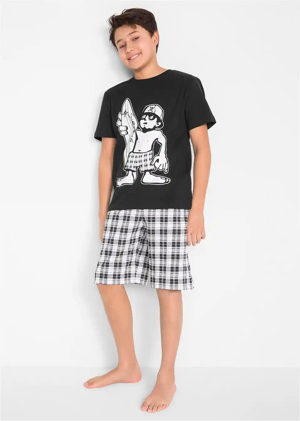 Sproščen in udoben se predstavi ta kul fantovski kratki pižama znamke bpc. Hlače in majica prepričajo z zelo prijetnim občutkom nošenja: kratke, kariraste hlače iz mehke majčne tkanine zagotavljajo veliko svobode gibanja zahvaljujoč svojo elastičnemu pasu, enako kot ohlapno krojena majica z moderno potiskano ilustracijo.