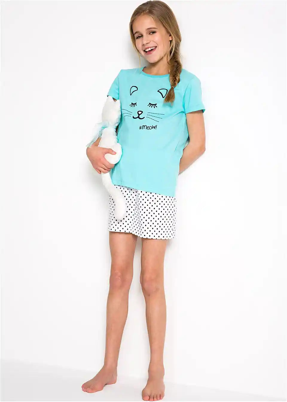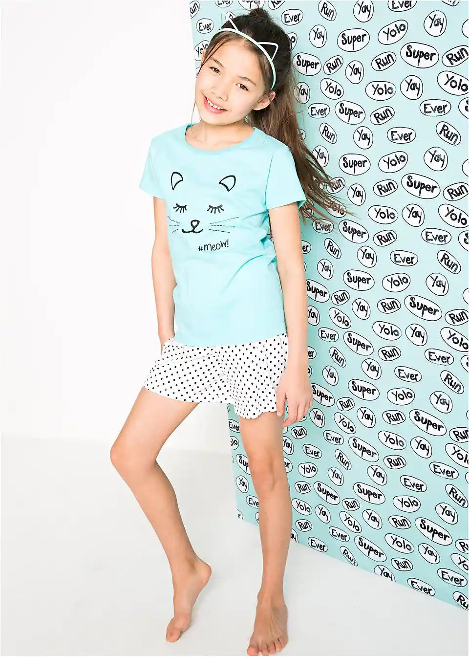 Sprostitev in crkljanje pod odejo - s to pižamo je dekletom udobno. Pižama Shorty znamke bpc ima na sprednji strani majice motiv živali. Kratke hlače iz kompleta so popolnoma potiskane s pikicami. Za visoko udobje in svobodo gibanja poskrbita sproščena oblika in elastični pas.