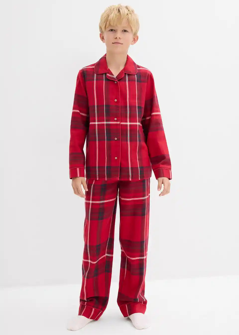 Udobna pižama s prazničnim karirastim vzorcem. Pižama je narejena iz mehkega bombaža. Zgornji del z gumbi.