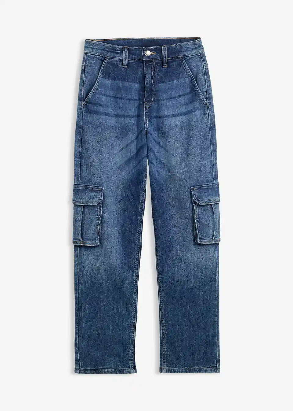 Kulske kavbojke s cargo žepi v udobnem kroju s toplo podlogo iz jerseyja