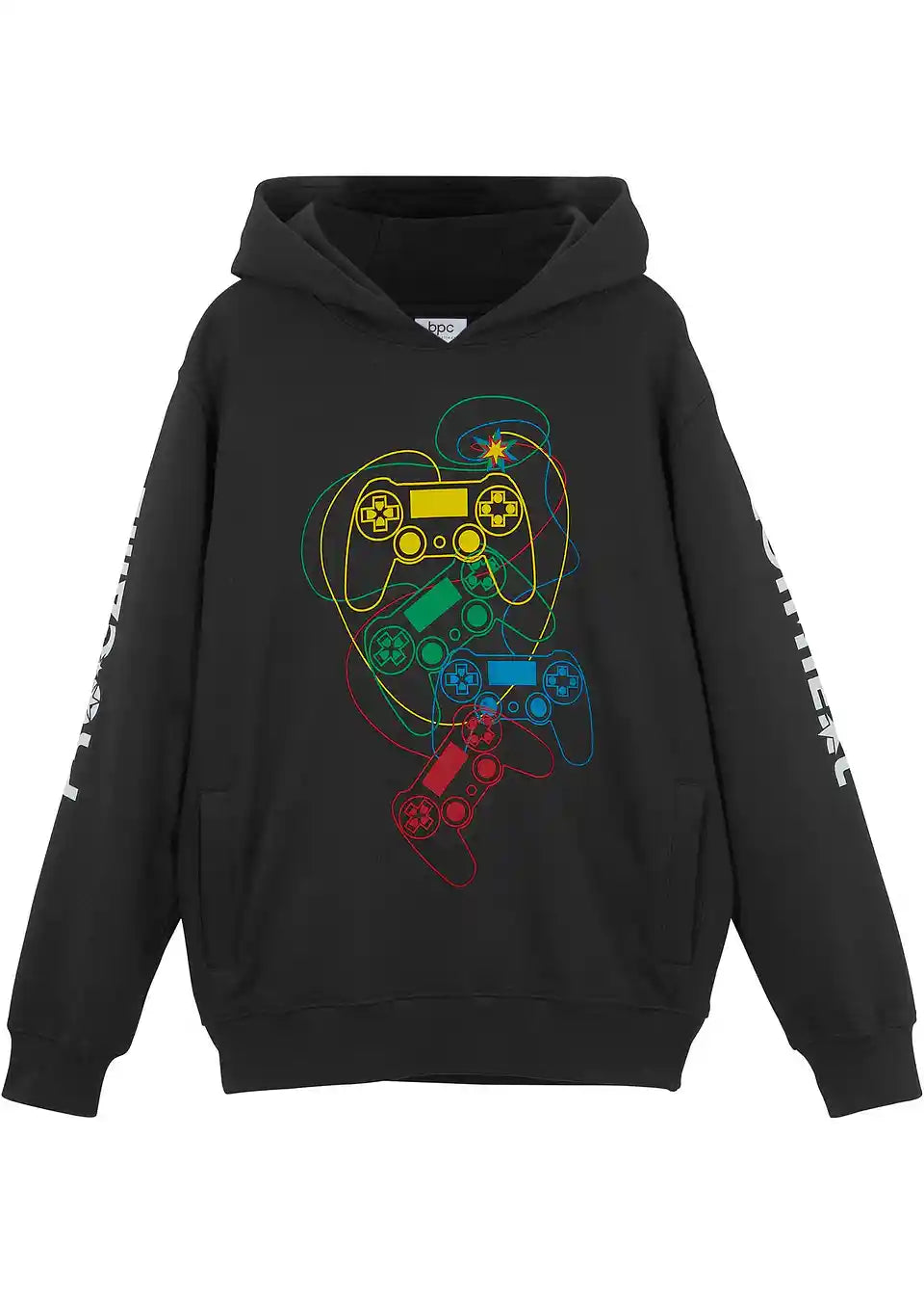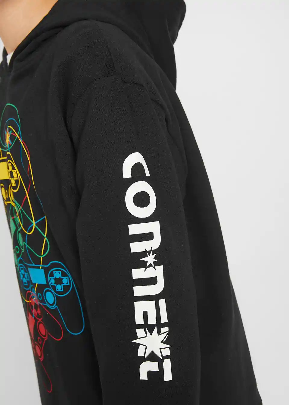 Ta kul kapucar s pisanim gamer potiskom na sprednji strani in potiski besed na rokavih je mogoče kombinirati z lahkotnimi džins hlačami in supergami za sproščen vsakdanji videz. Zaradi širokih rebrastih zaključkov in kakovosti organskega bombaža je hoodie posebej udoben.