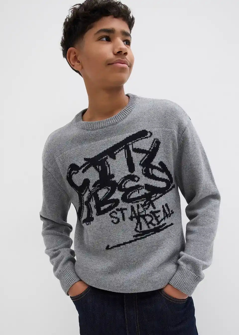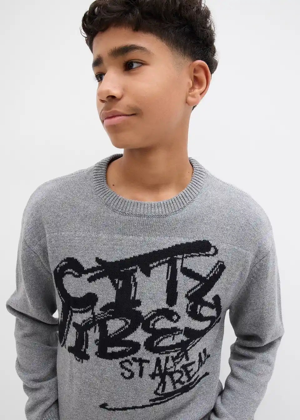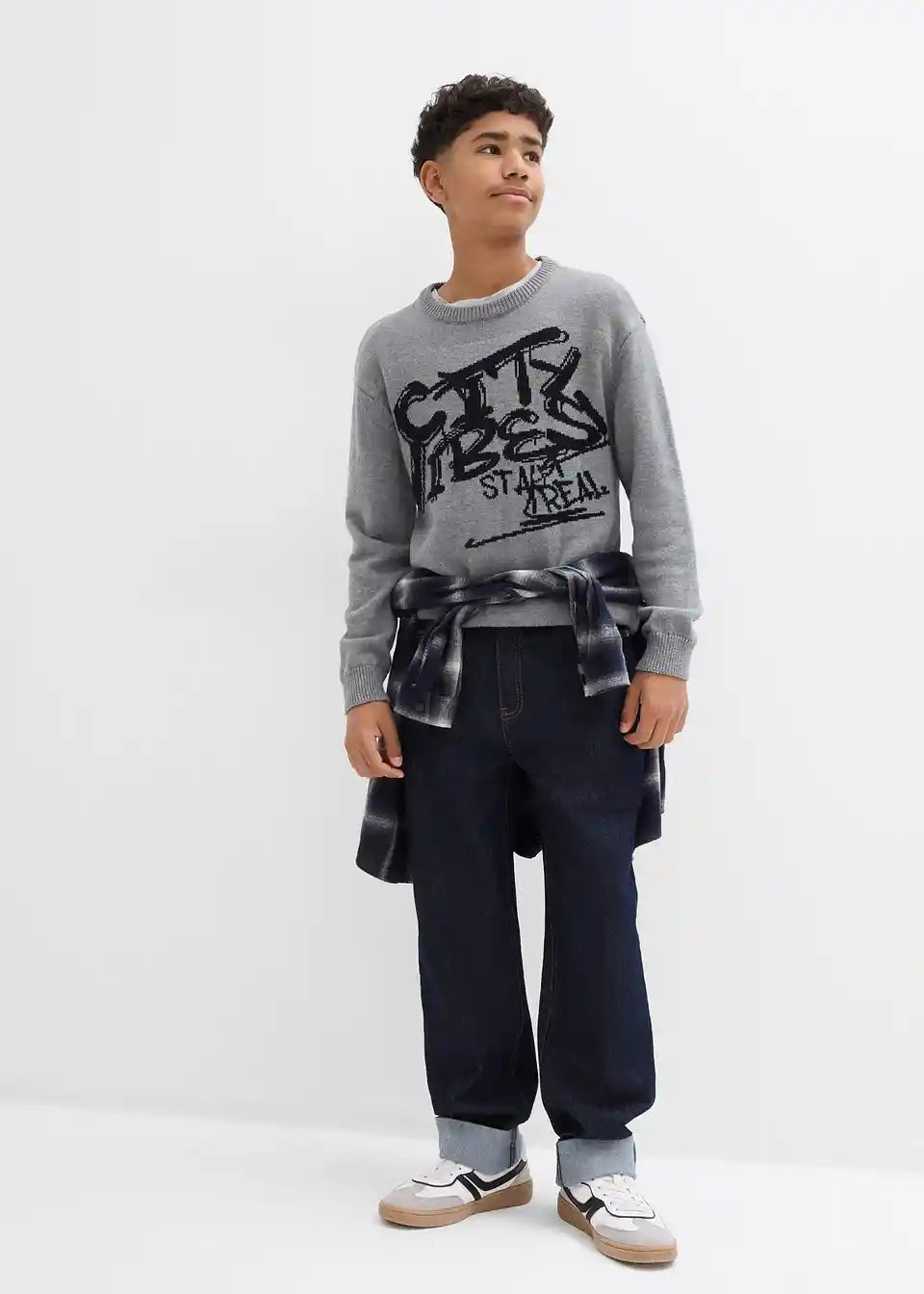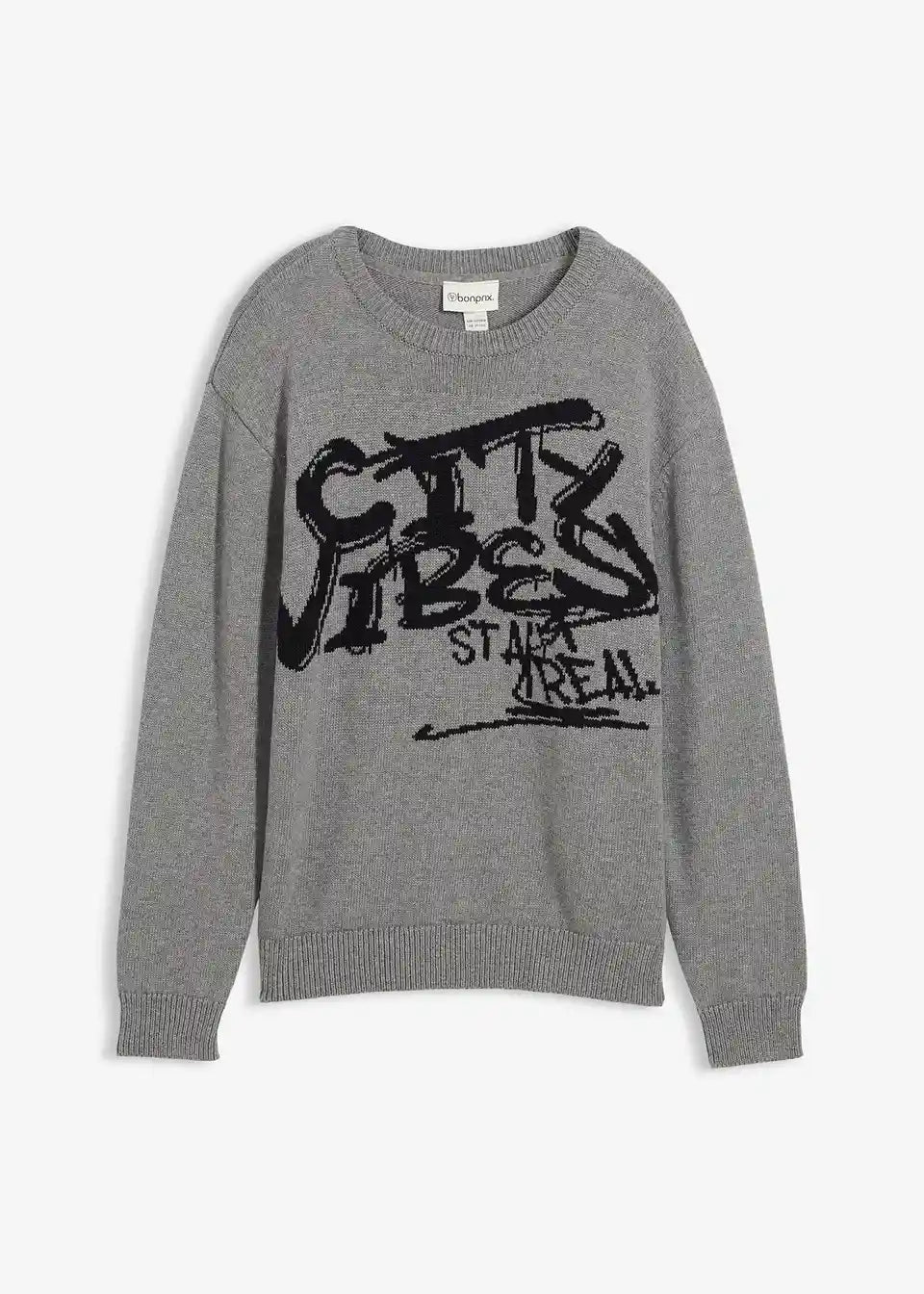 Moden fantovski bombažni pulover z grafičnim vzorcem