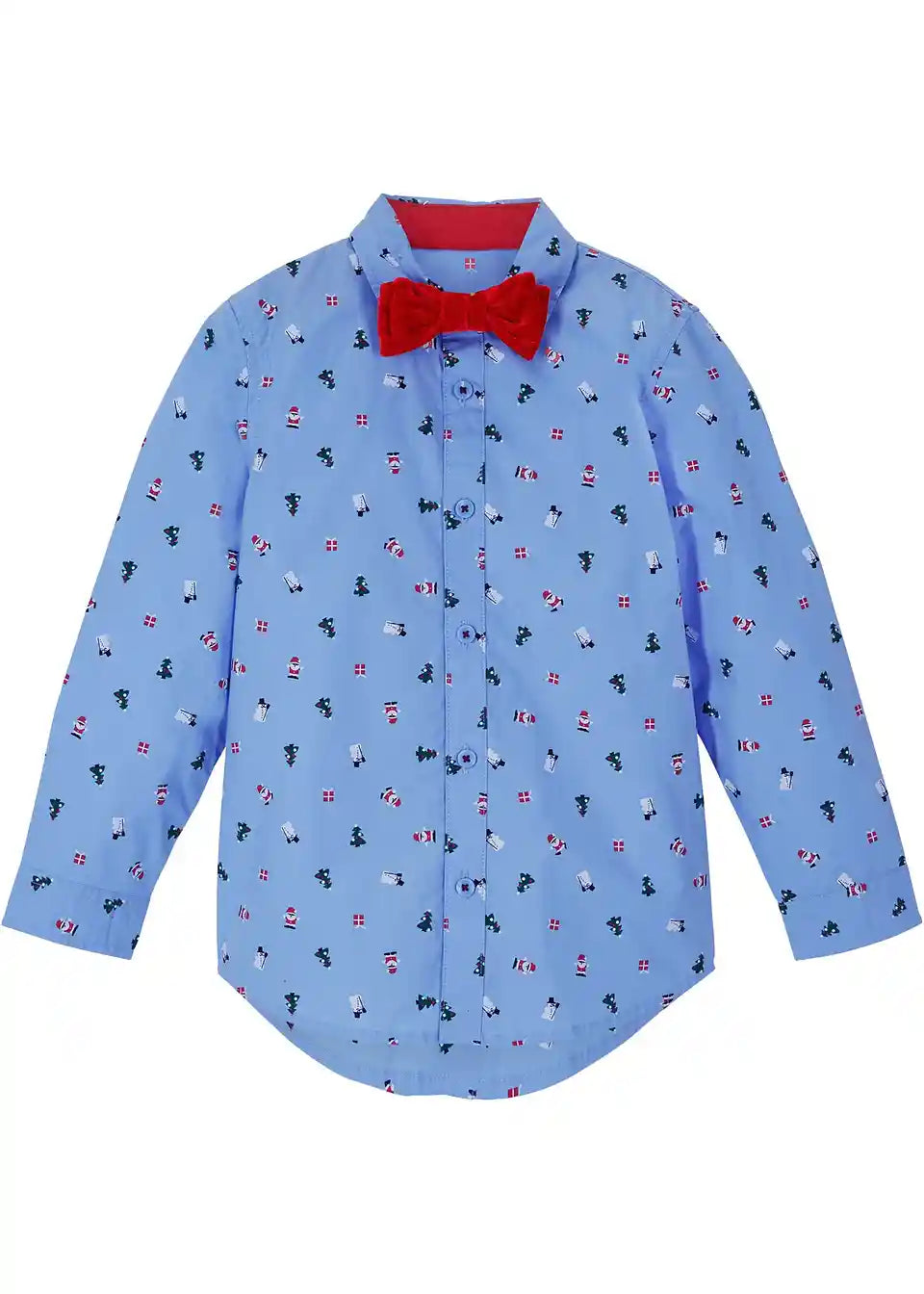 Ta srajca z barvno kontrastno kravato v Slim Fit kroju za fante je pravi pogled za privlačnost! Božični Allover potisk takoj pritegne pozornost. Model s Kent ovratnikom in enostavnim zapenjanjem na gumbe omogoča visoko udobje nošenja. Manšete so dekorativno oblikovane z režo in gumbi.