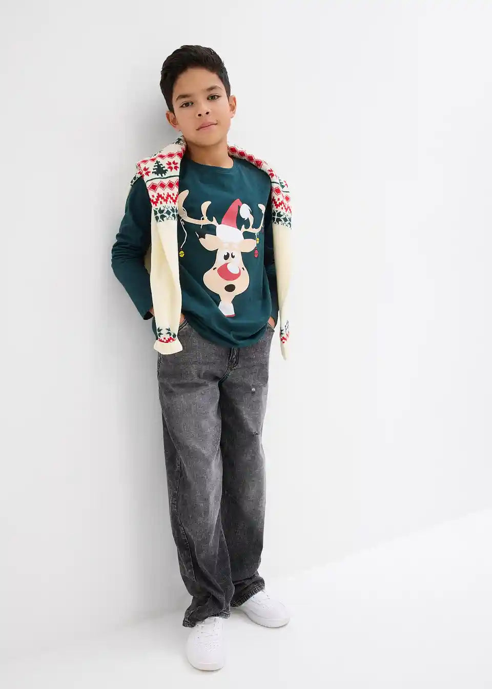 Čudovita majica z dolgimi rokavi za fante s prazničnim potiskom