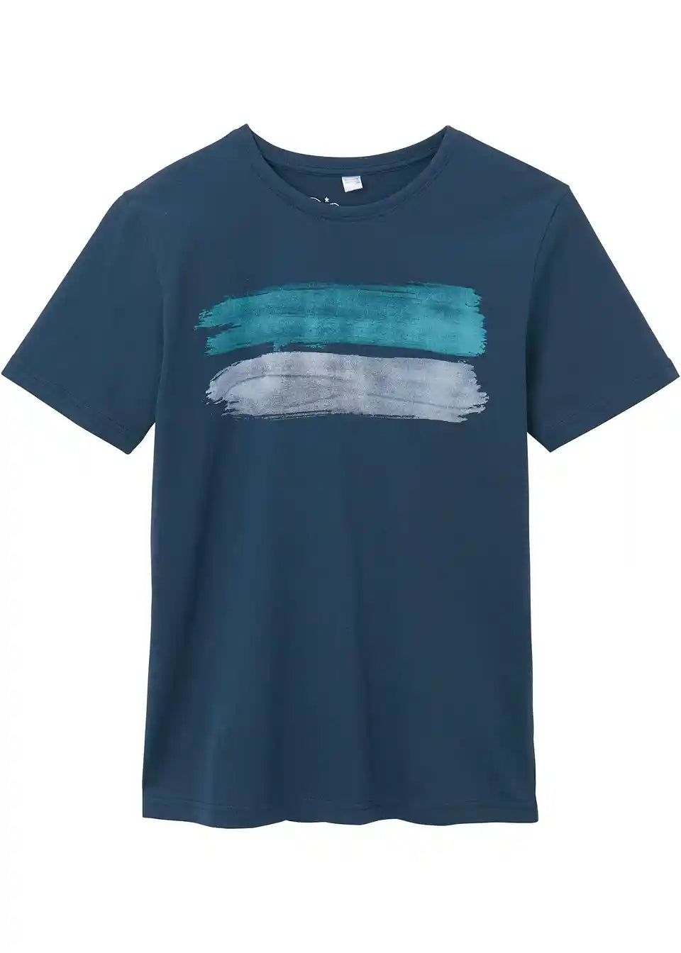 Klasičen T-Shirt z okroglim izrezom in potiskom na sprednji strani. Zaradi abstraktnega in diskretnega potiska je majica popolna tako za šolo kot prosti čas.