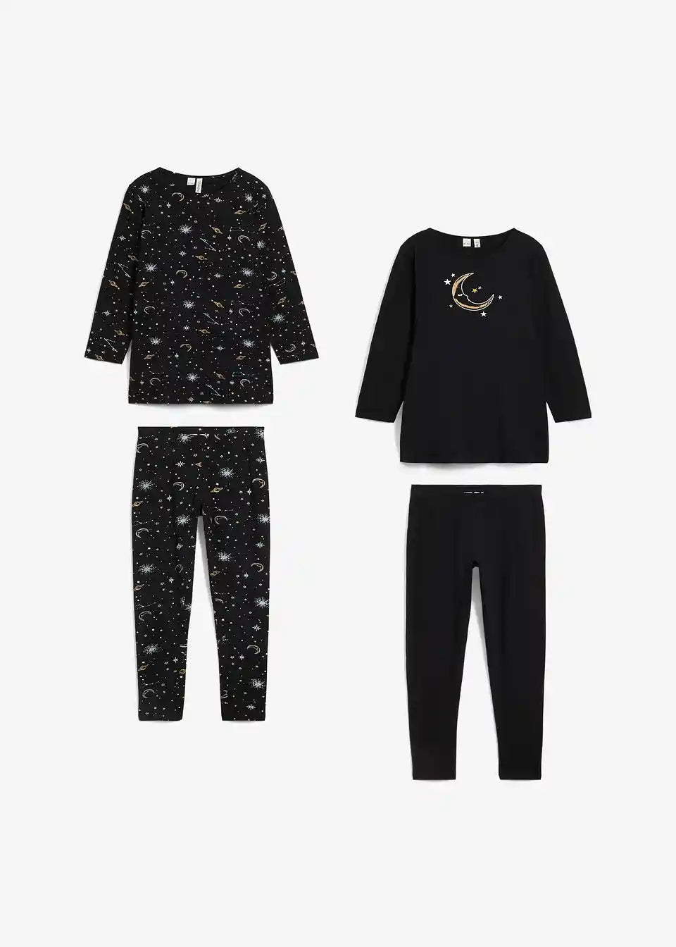Dolga majica in pajkice z mehkim ekološkim bombažem s sijočim potiskom (4-delni set)