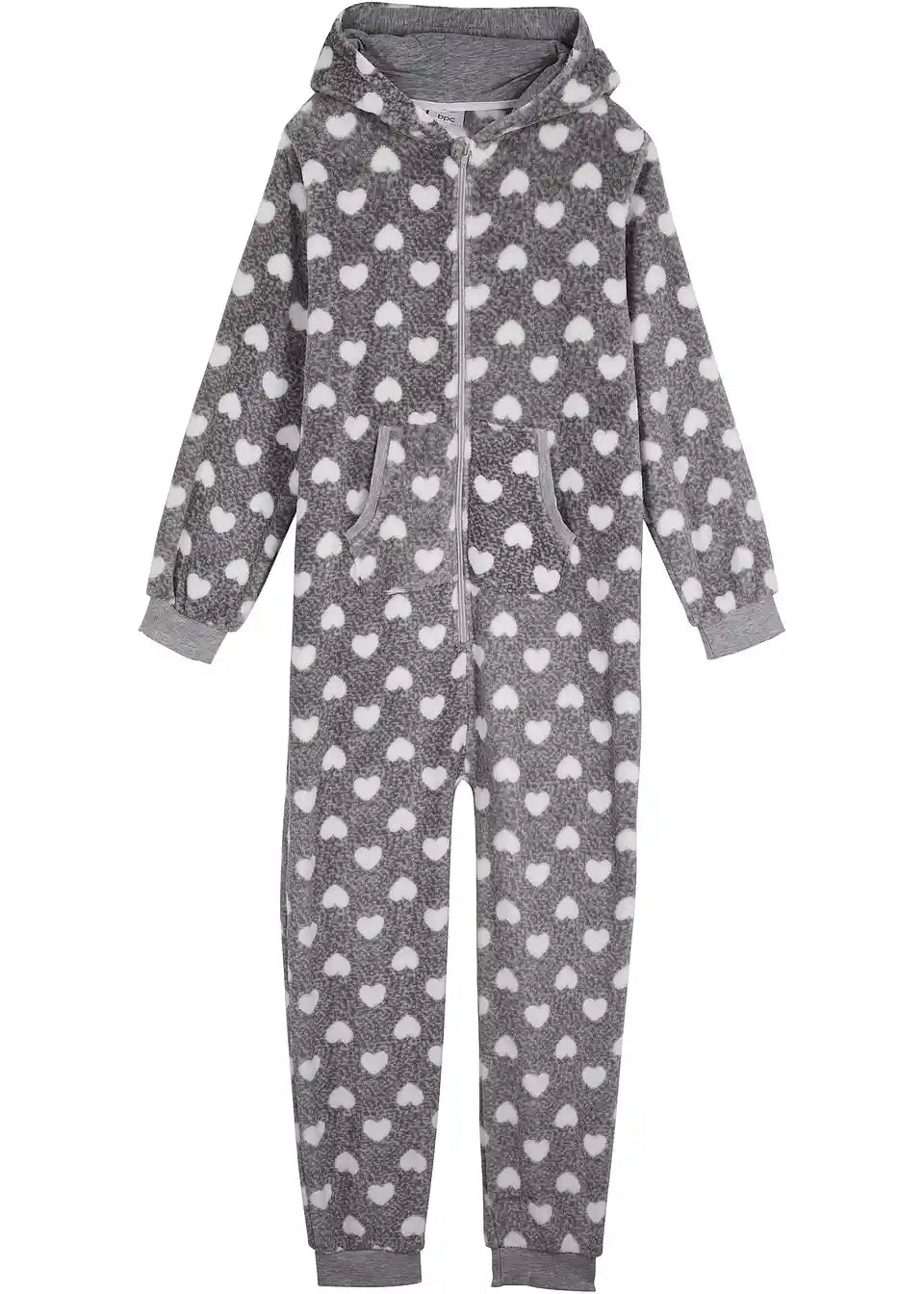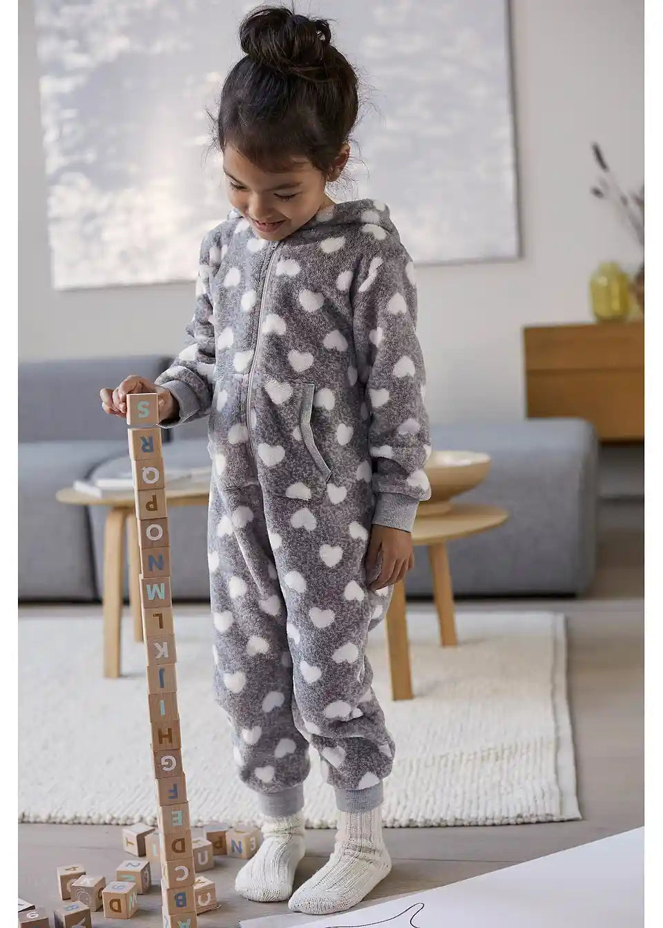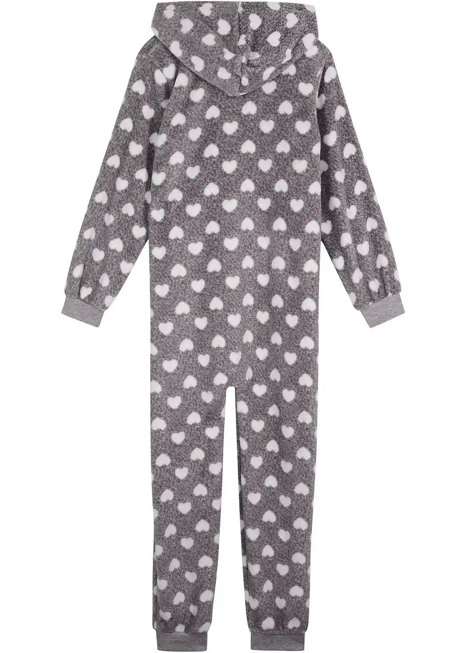 Ta mehak overall za doma prepriča s svojim neprekosljivim dejavnikom udobja. Overall je na voljo v dveh barvnih različicah in po izbiri okrašen z ljubkim vzorcem srčkov ali zvezdic. Praktičen kenguru žep ponuja prostor za shranjevanje, medtem ko zadrga z zaščito za brado omogoča enostavno oblačenje.