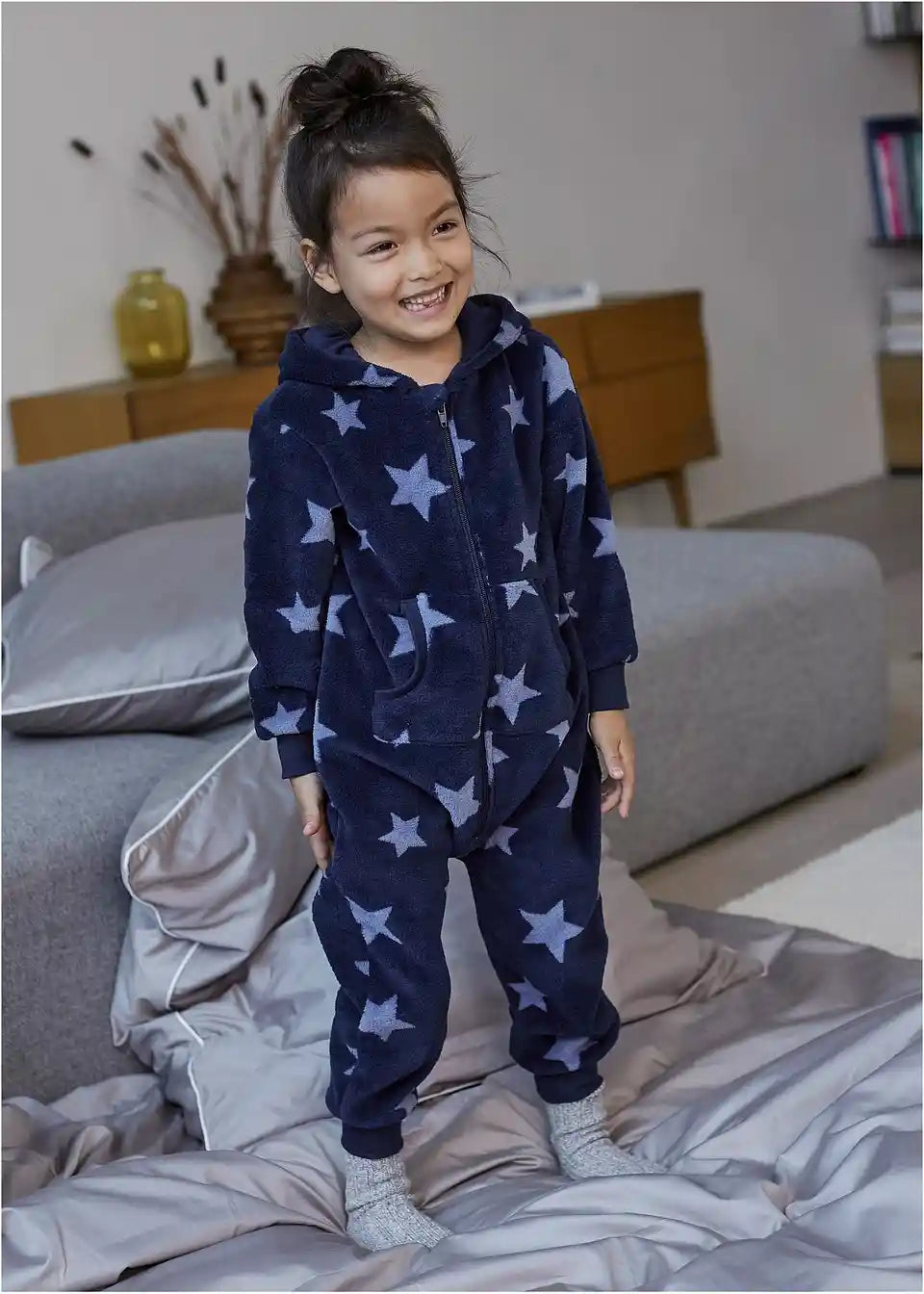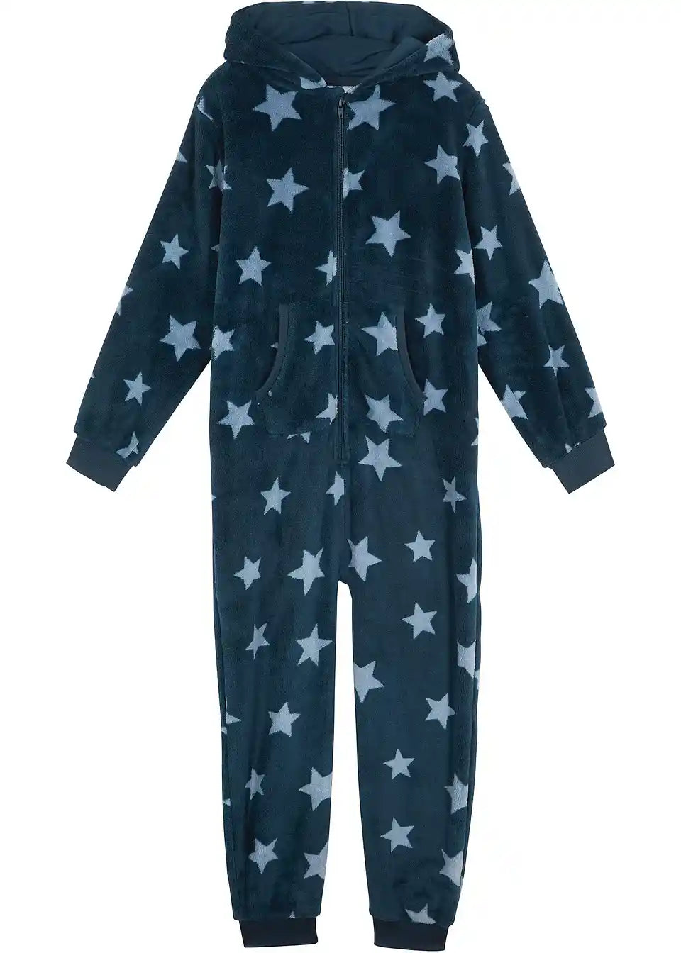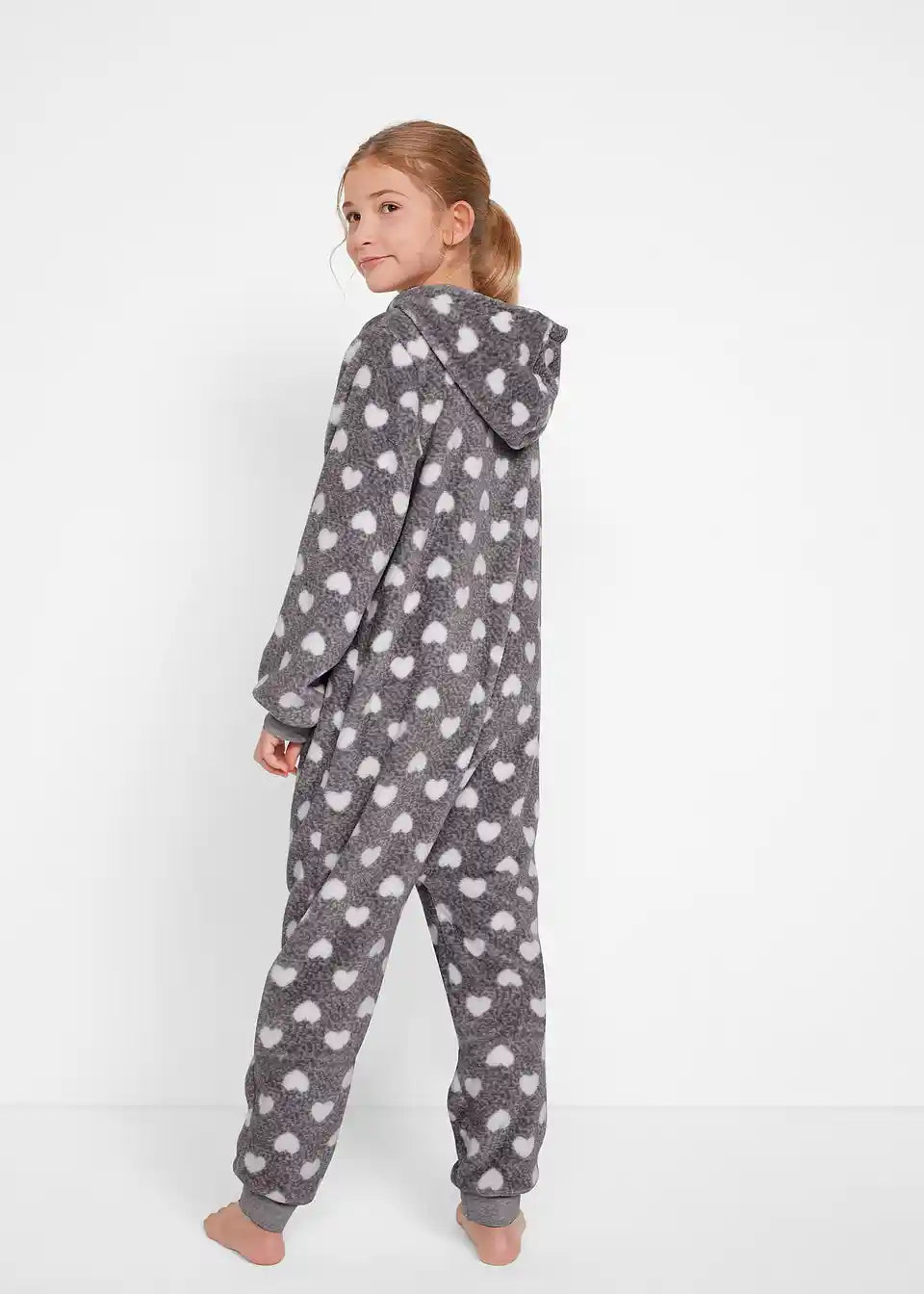 Ta mehak overall za doma prepriča s svojim neprekosljivim dejavnikom udobja. Overall je na voljo v dveh barvnih različicah in po izbiri okrašen z ljubkim vzorcem srčkov ali zvezdic. Praktičen kenguru žep ponuja prostor za shranjevanje, medtem ko zadrga z zaščito za brado omogoča enostavno oblačenje.