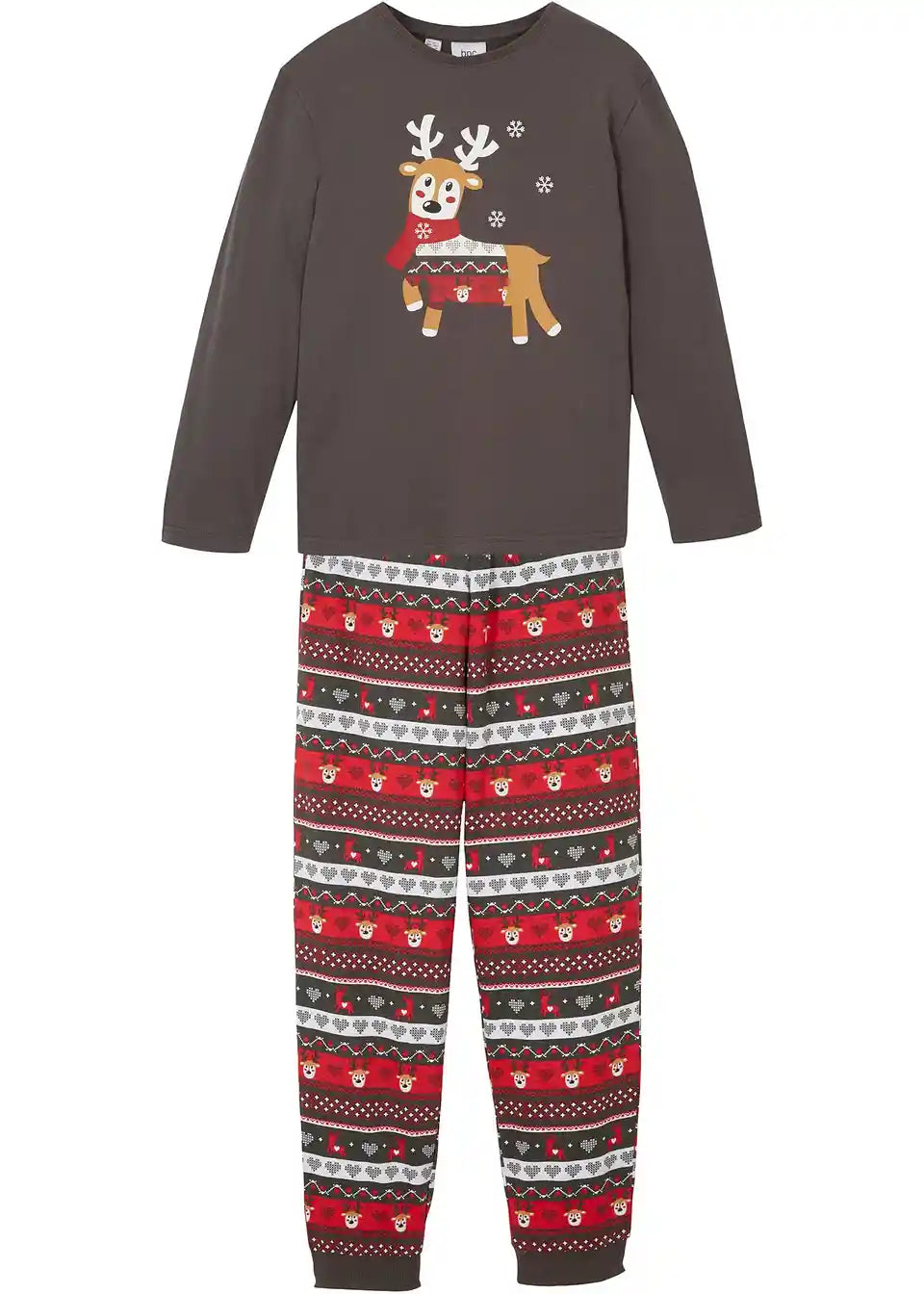 Ta lepa pižama navduši predvsem s svojim zimskim dizajnom. Zgornji del ima simpatičen motiv jelena na sprednji strani, hlače pa so s svojim celotnim potiskom pravi privlačnež! Posebno udobje tej pižami zagotavljajo široki zaključki hlačnic in pasu ter prijeten bombažni material. Popoln obvezen kos za prijetne zimske trenutke doma!