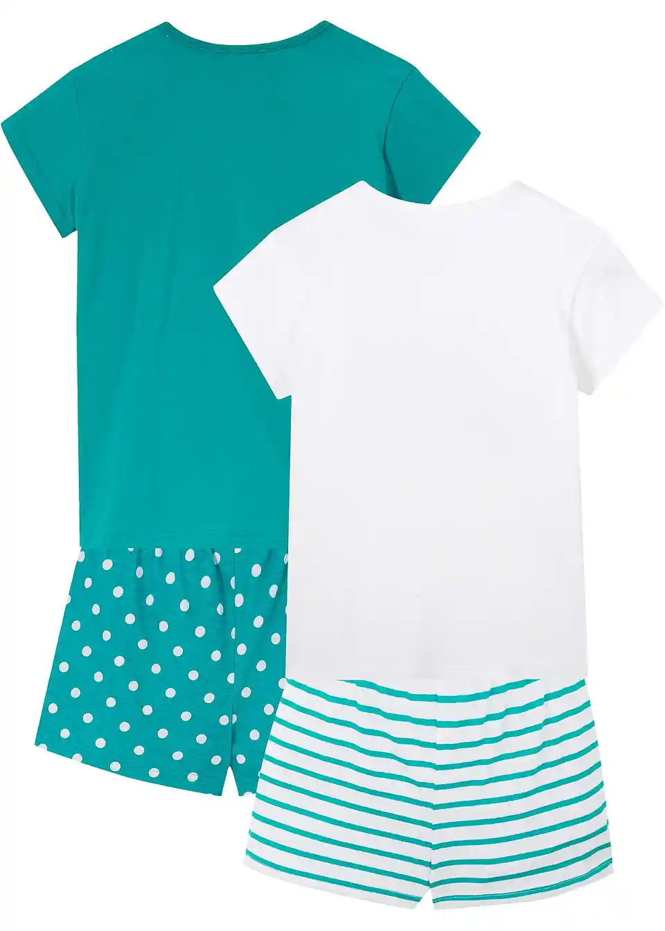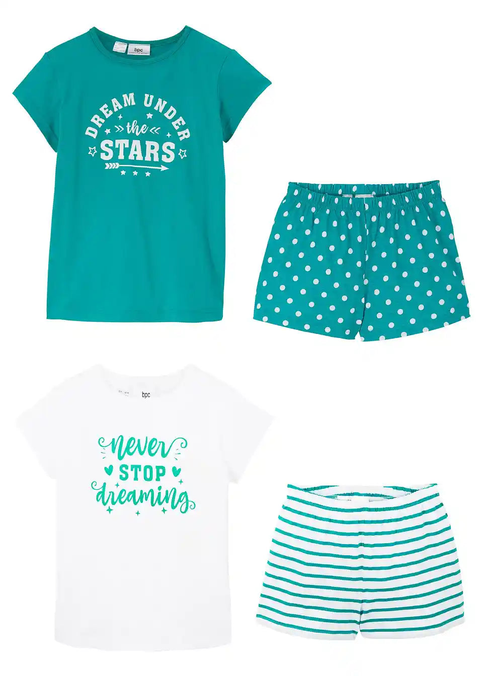 Ta modni Shorty je obvezna oprema za vse trendovske punce. Potisk z napisi na majici s kratkimi rokavi in pisane kratke hlače pritegnejo pogled. Kakovost bombaža in elastičen pas na hlačah zagotavljajo udobje. Komplet je na voljo v paketu po 2 z dvema različnima dizajnoma.