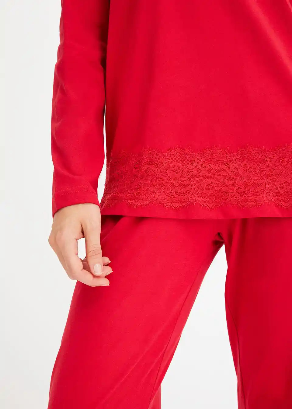 Pižama iz mehkega bombaža s čipko