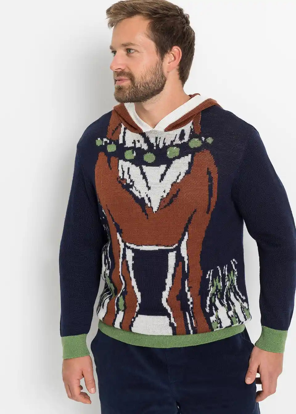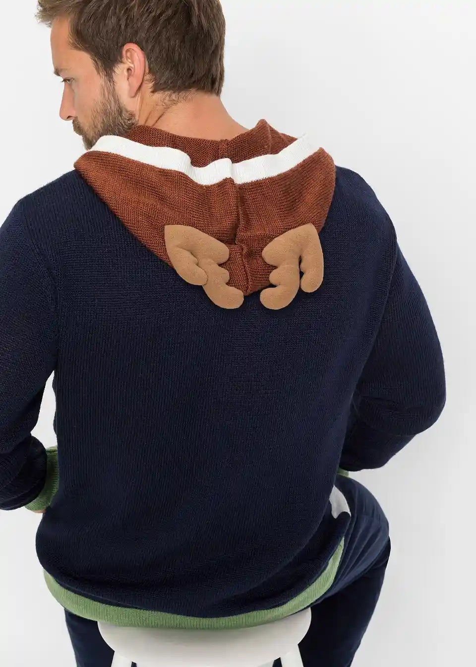 kul pulover z božičnim motivom in zabavnimi rogovi na kapuci