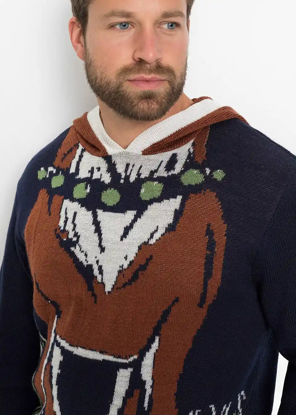 Pulover s kapuco in božičnim motivom iz recikliranega poliestra