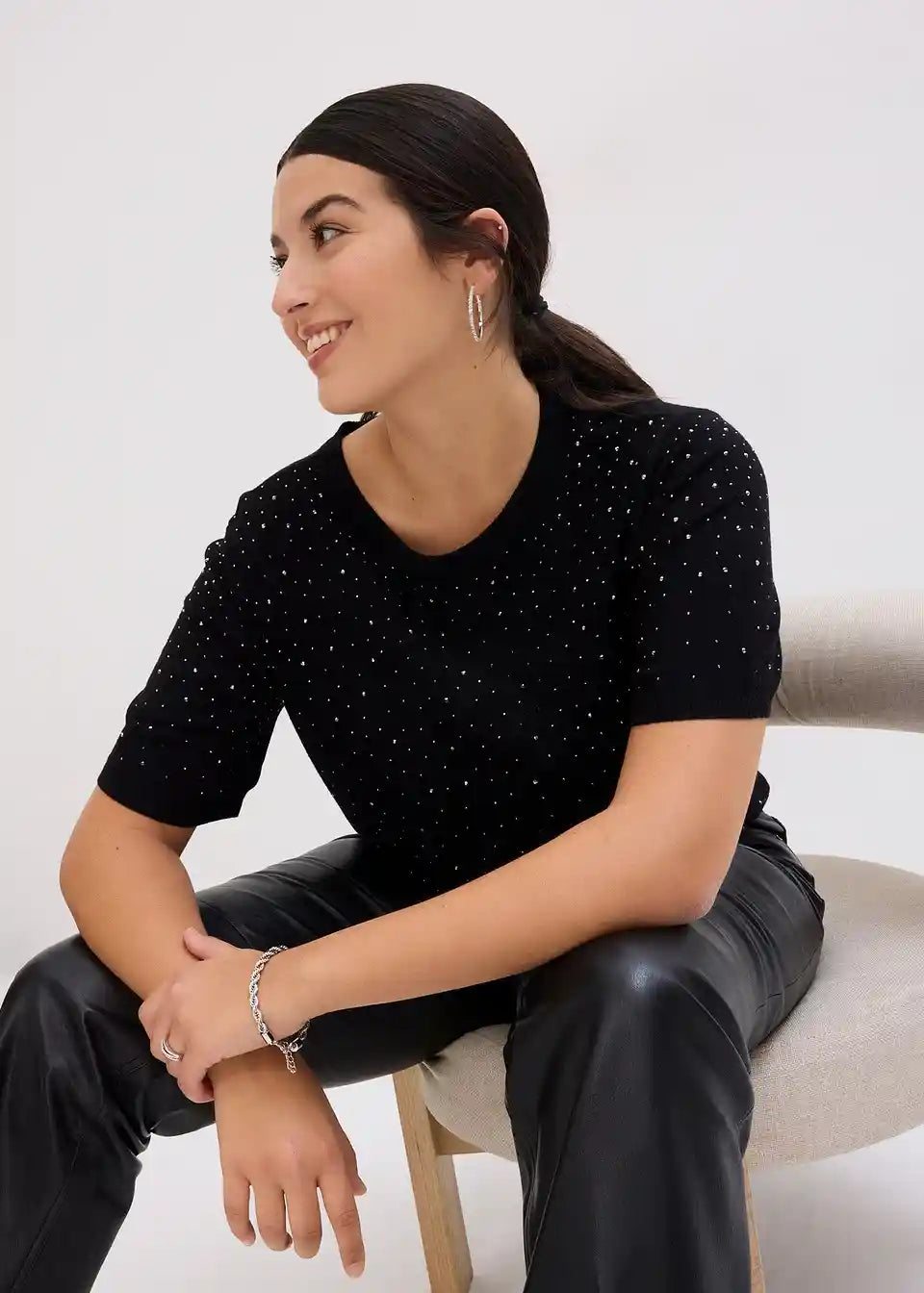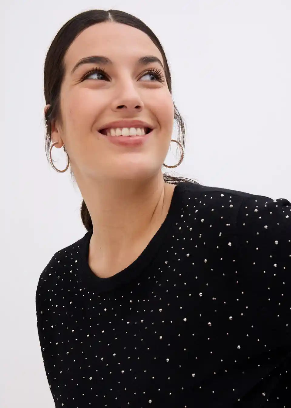 Pulover s sijočimi kamenčki in kratkimi rokavi