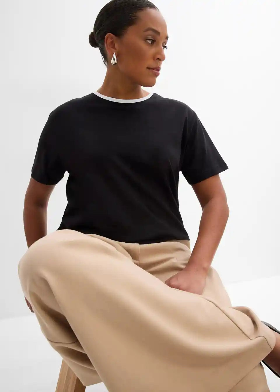 T-Shirt z rahlo oprijetim krojem in kontrastnim izrezom