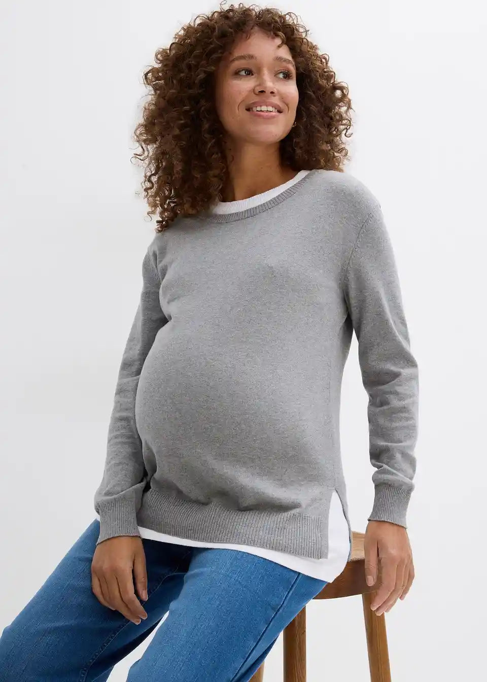 3-v-1 set nosečniškega puloverja in topa za dojenje iz bombažne pletenine