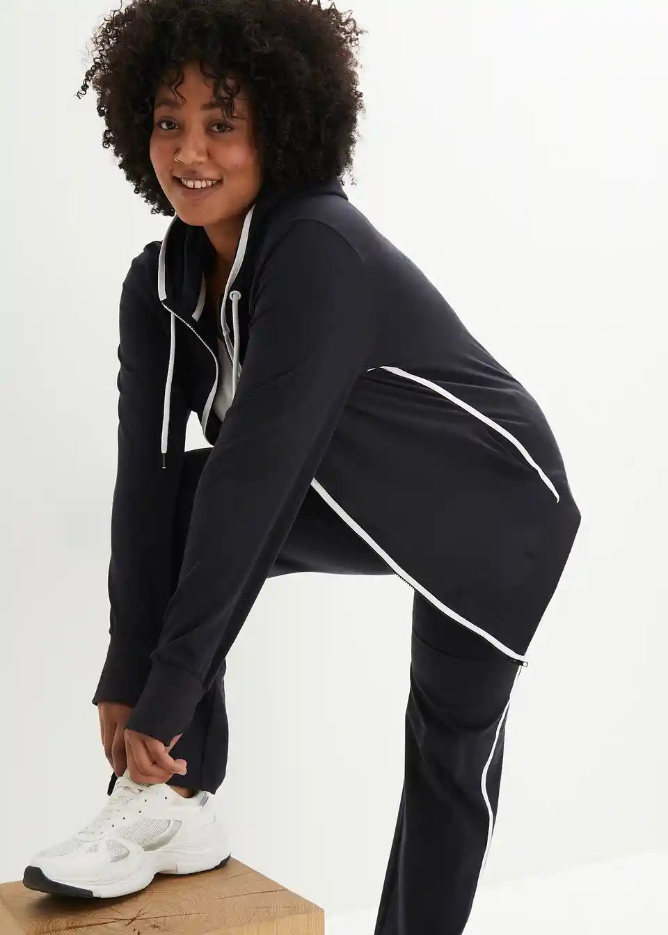 Udobna bombažna trenirka z jopo iz trikoja in jogging hlačami v ravnem kroju