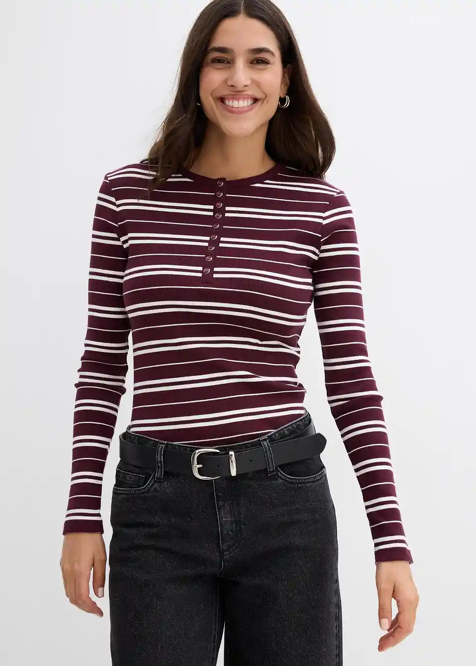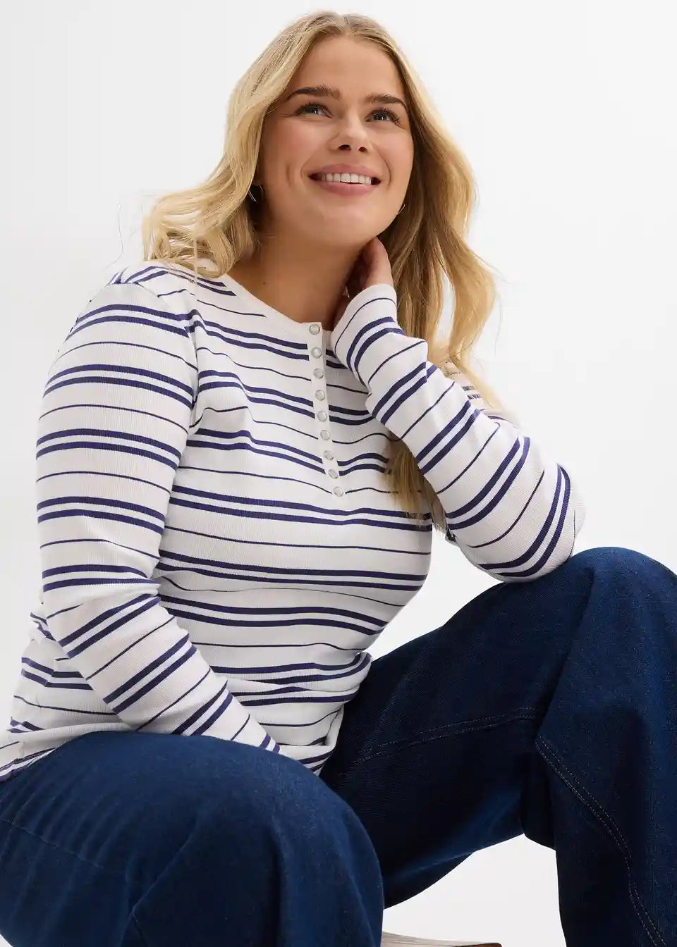 Modno črtasta majica z dolgimi rokavi iz mešanice z deležem ekološkega bombaža