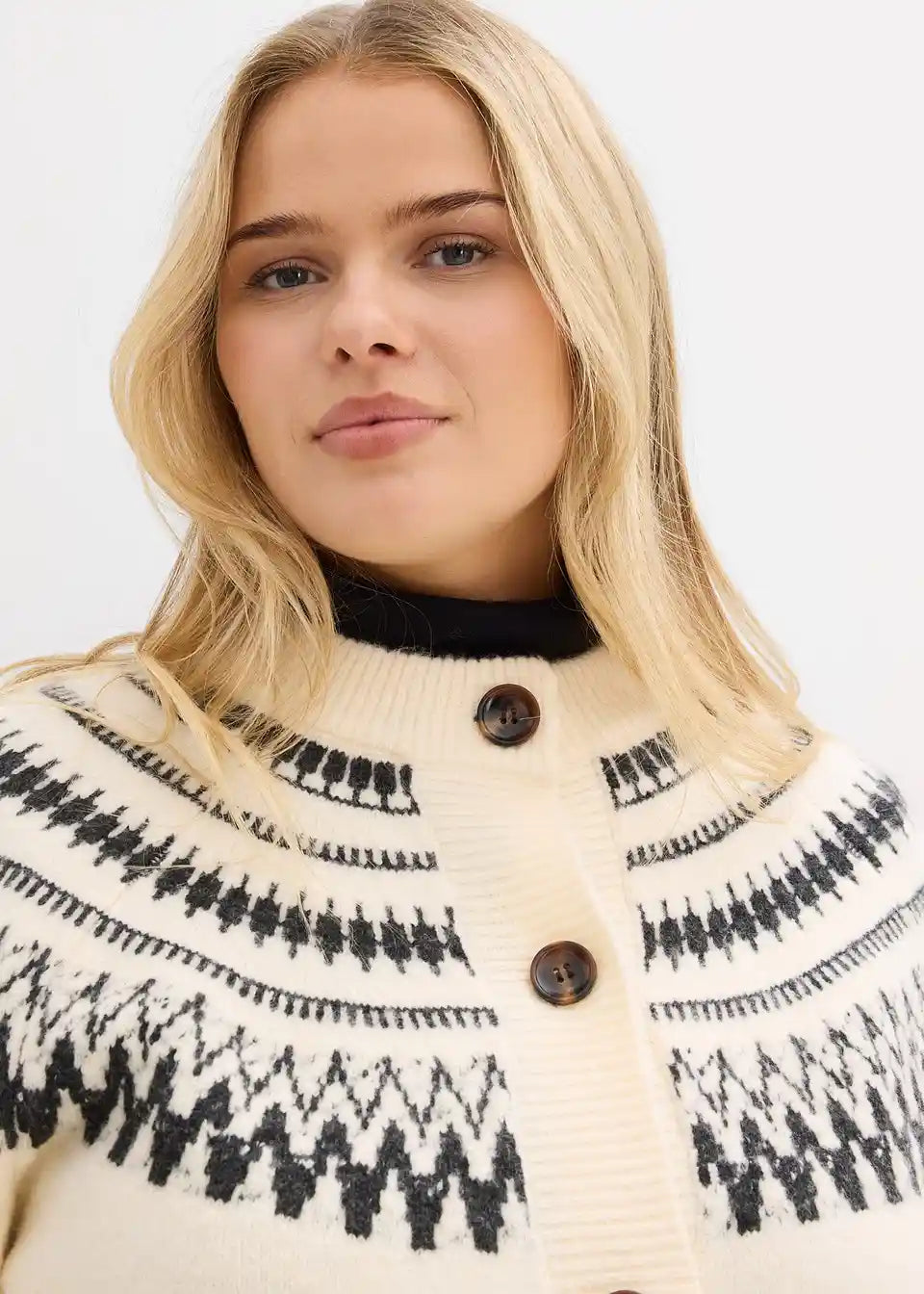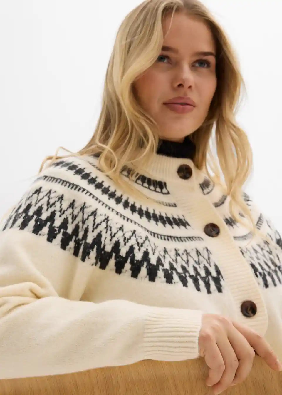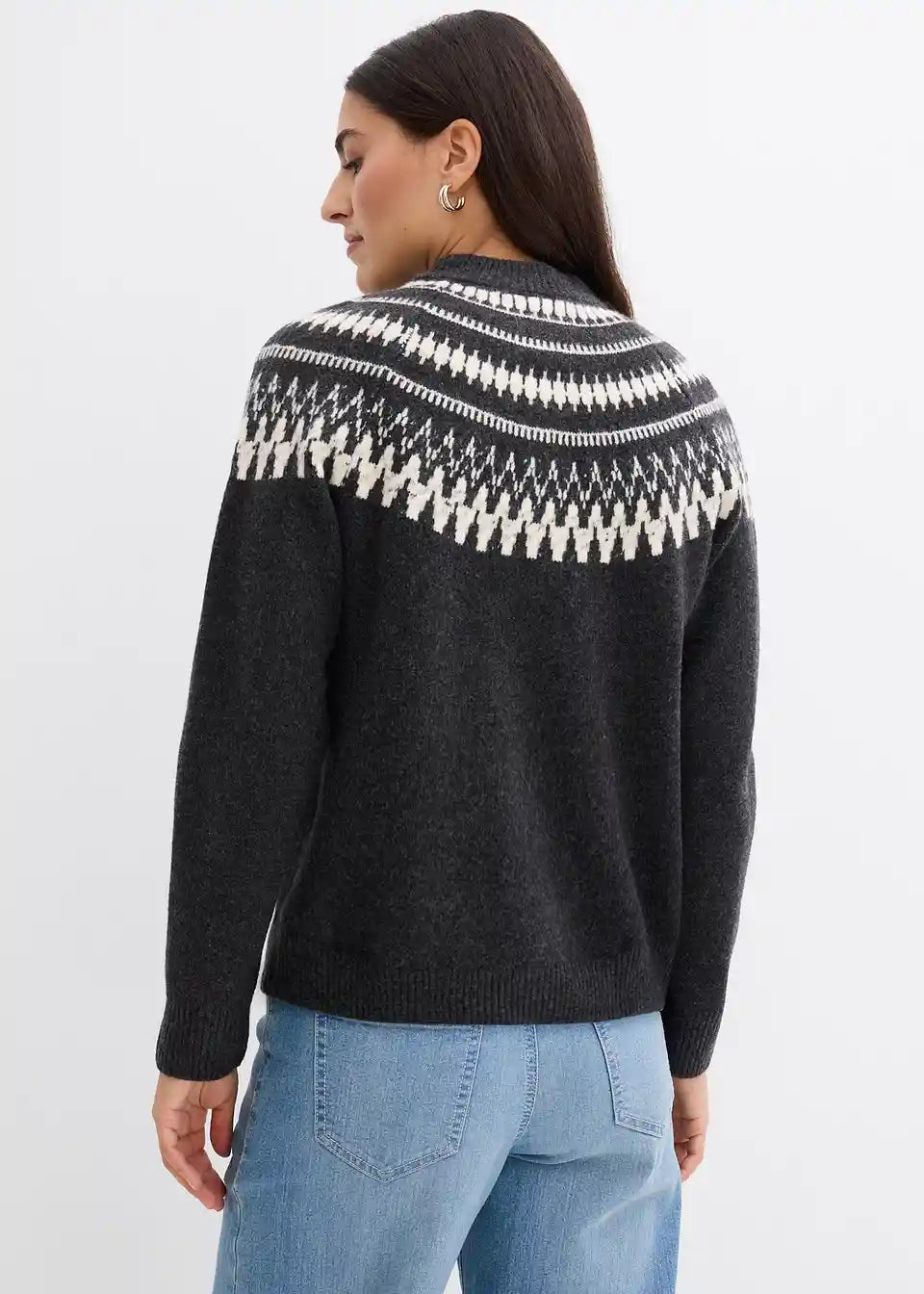 Prijetno mehka pletena jopa z modnim norveškim vzorcem