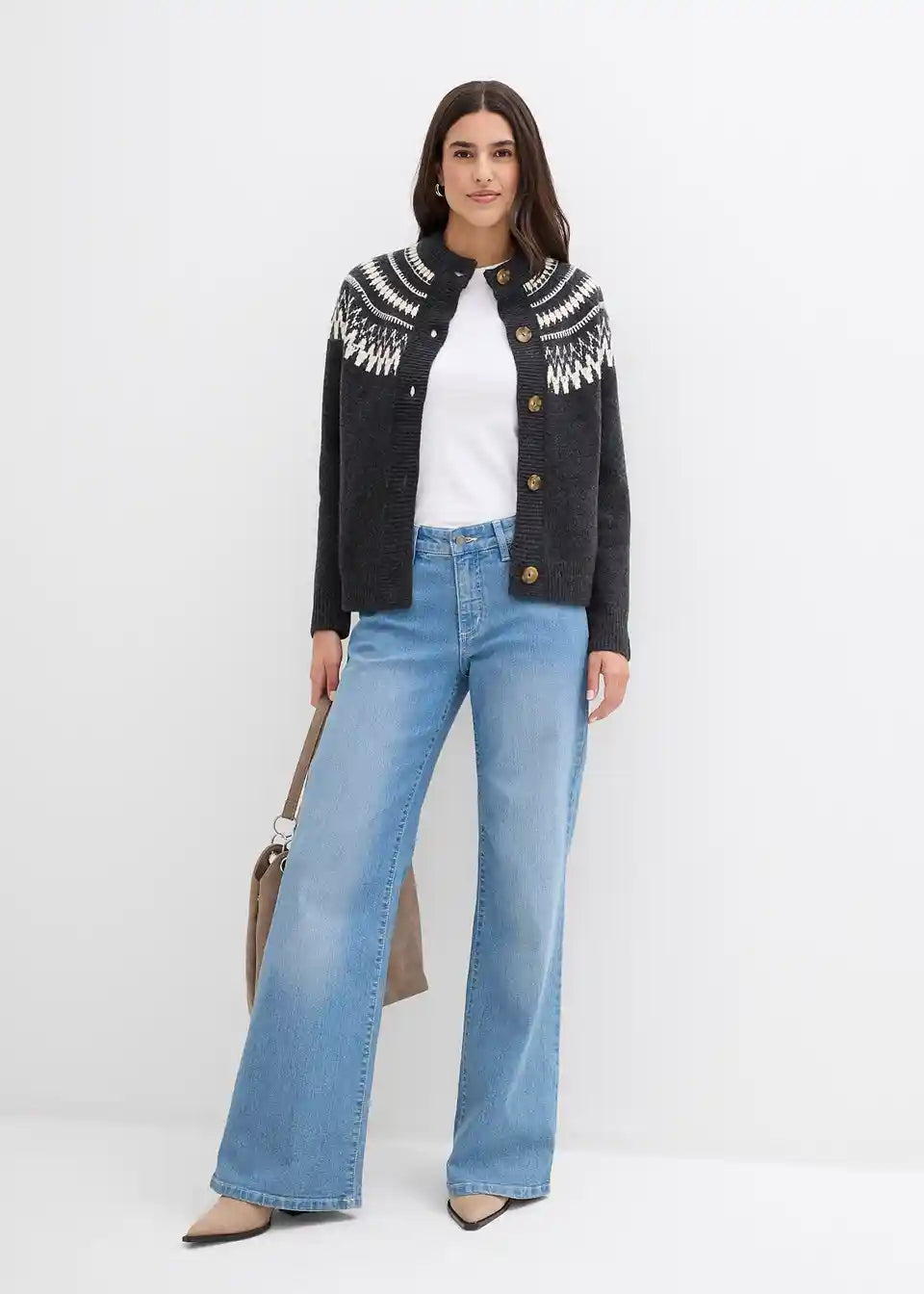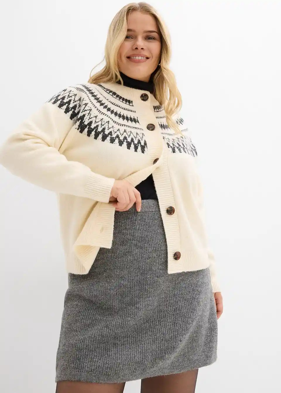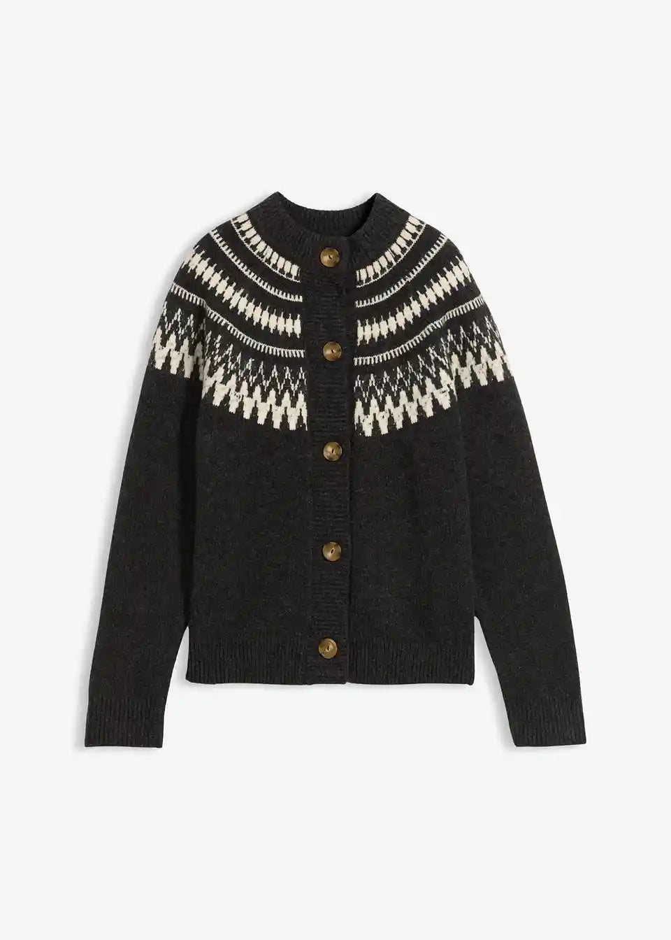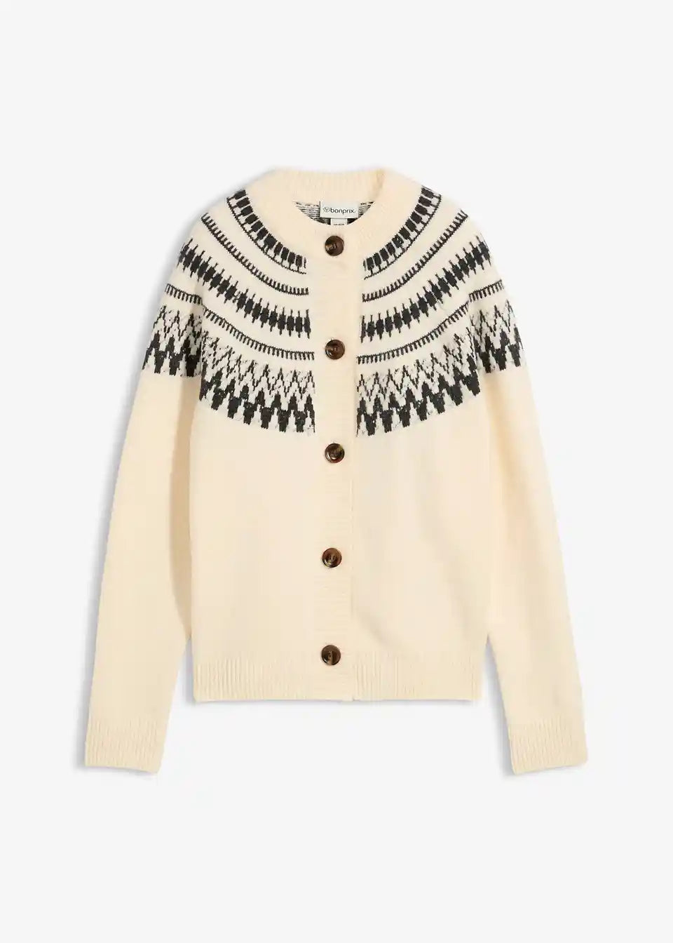 Prijetno mehka pletena jopa z modnim norveškim vzorcem
