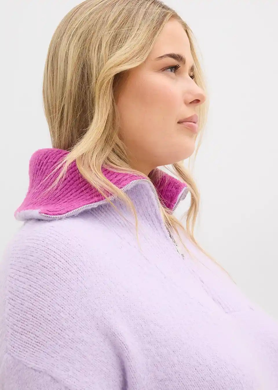 Moden pulover s trojanskim ovratnikom z zadrgo